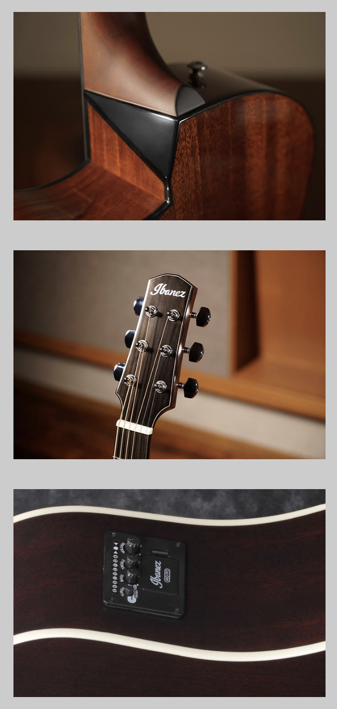 Tra le peculiarità costruttive della nuova serie Advanced Acoustic, vi è l’innovativo sistema di catenature scalloped X-M Bracing, che Ibanez mette a punto per un suono capace di bucare il palco: dunque, totale trasmissione delle vibrazioni alle corde, articolata definizione delle frequenze basse, croccantezza delle alte e gamma delle medie calda e rotonda; il tutto per rispondere a una palette di dinamiche decisamente ampia e marcata.