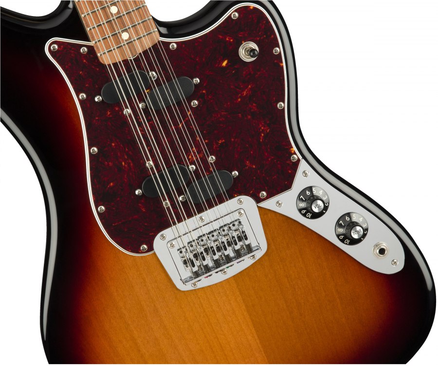 Fender official websiteElectric XII - Corpo: ontano – Manico: C shape – Tastiera: Pau Ferro – Radius: 9,5” – Pickup: 2x split-coil per un suono caldo e articolato – Selettore a 3 posizioni – Ponte fisso dotato di 12 sellette per la precisa regolazione dell’intonazione – Meccaniche: vintage style – Custodia: Deluxe Gig Bag – Finiture disponibili: 3-Color Sunburst, Lake Placid Blue, Olimpic White
