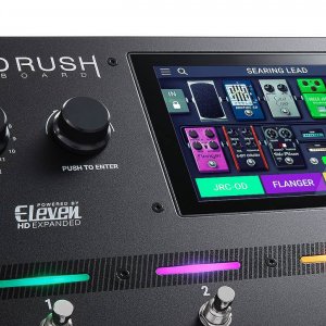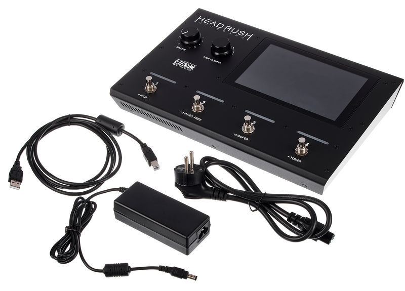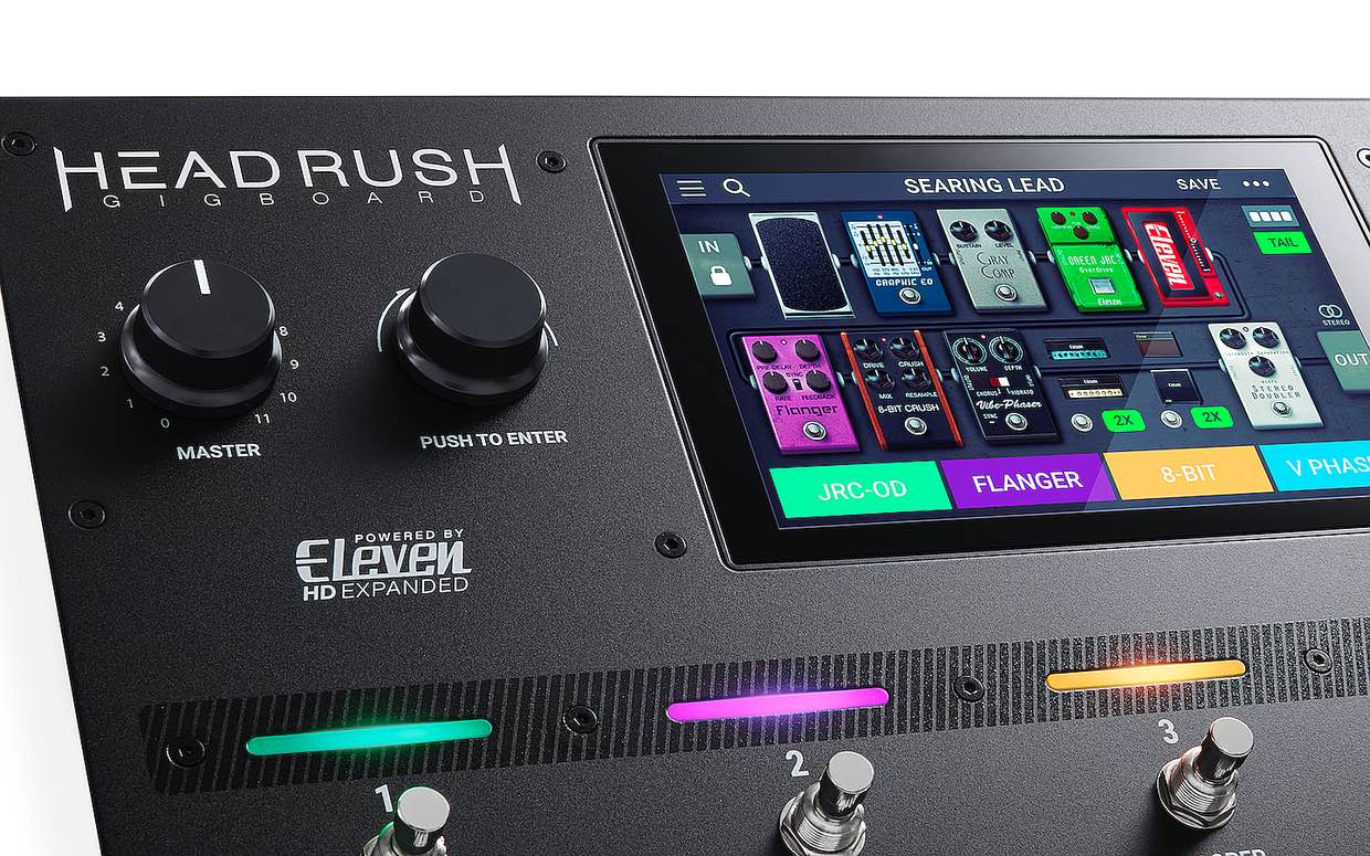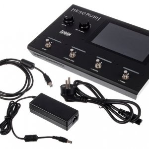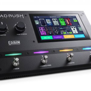 Headrush Gigboard Pedaliera per chitarra con modelli di amplificatori, cabinet, microfoni ed effetti – Sistema: DSP quad-core equipaggiato con l’esclusivo motore software Eleven HD ExpandedTM – Modelli: 41 amplificatori, 15 cabinet, 10 microfoni, 6 distorsori, 5 processori di dinamica/EQ, 17 effetti di modulazione, 9 riverberi/delay, 8 rotary e 5 expression – Footswitch: 4 multifunzione con led spia – Controlli: Master Volume, Navigation/Data Encoder – Display: touch screen a colori da 7pollici (mm 150x93) – Connessioni: 1/4” (6.35 mm) TS input (guitar), 1/4” (6.35 mm) TRS input (expression pedal), 1/4” (6.35 mm) TS input (expression pedal toe switch), 1/8” (3.5 mm) stereo input (auxiliary device), 1/4” (6.35 mm) TRS output (external amp switch), 1/4” (6.35 mm) TRS input (send), 1/4” (6.35 mm) TRS output (return), 5-pin MIDI input, 5-pin MIDI output/thru, USB Type-B port, IEC power input – Alimentazione: 19 VDC, 3.42 A, center-positive (Alimentatore incluso) – Dimensioni: (cm) 32.92x22.56x6.71 – Peso: Kg 3,24 – Prezzo: Euro 599,00 (Iva inclusa)