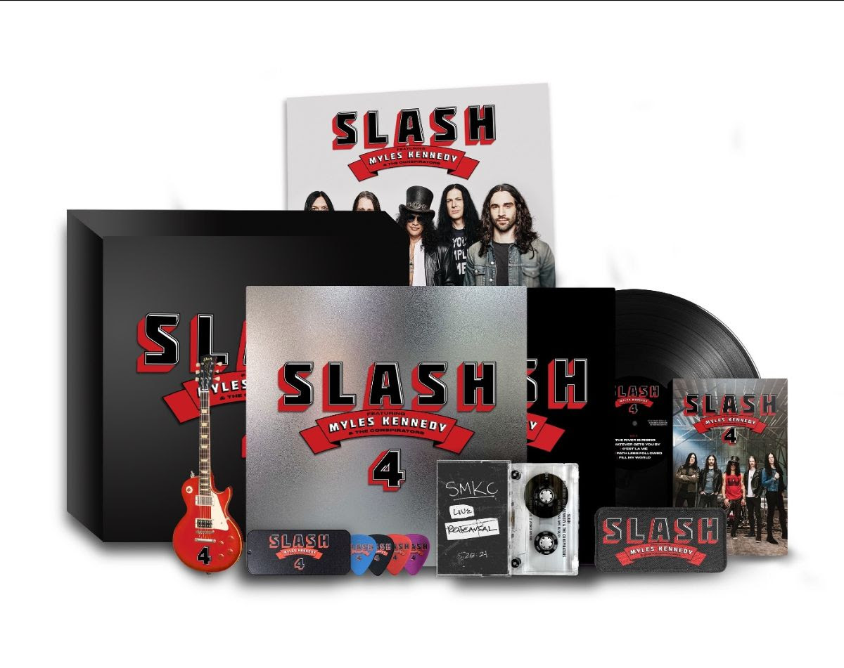 I cofanetti sono completati da Cassetta contenente prove live di quattro brani (“Live Rehearsal Tape 5/28/21”), una mini-chitarra Les Paul Axe Heaven Custom Limited Edition 4 Slash, 4 plettri Slash Custom con contenitore, libro fotografico, patch, litografia 12” – http://www.slashonline.com