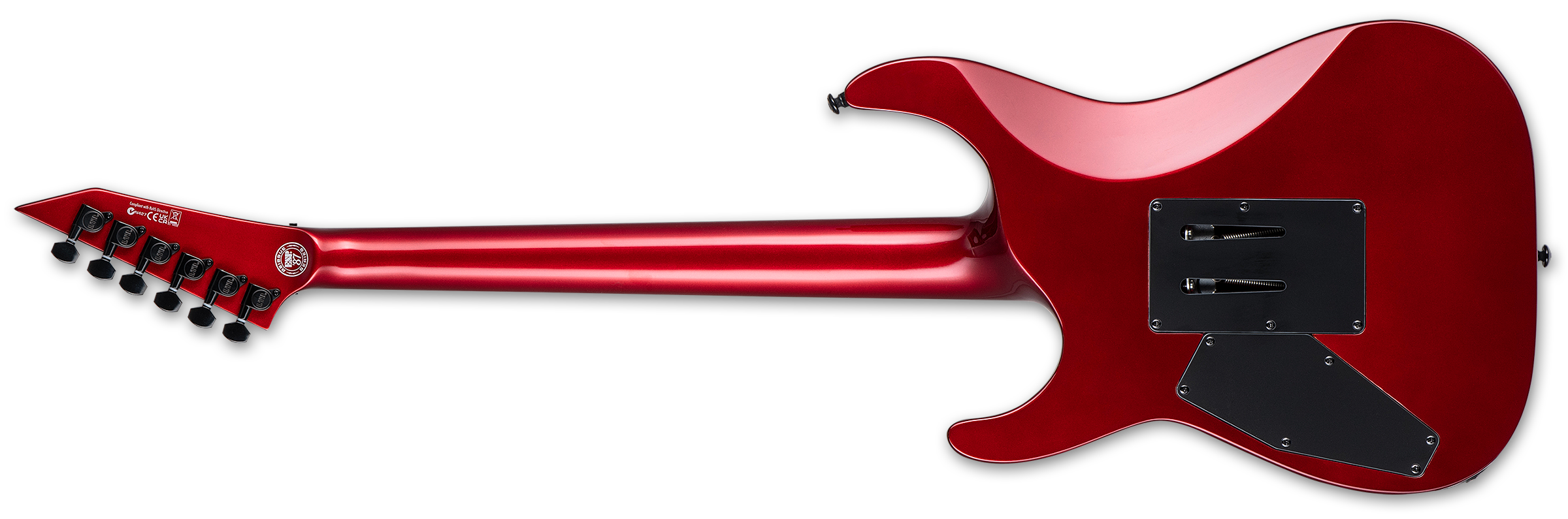 La nuova Horizon Custom ‘87 torna a vivere così come il brand l’aveva ideata anni fa. La costruzione è di tipo Neck-Thru, e la scala è sempre 25,5”. Per quanto riguarda la scelta dei legni, LTD ha optato per una combinazione classica, formata da Ontano per il body, e Acero per il manico (in tre pezzi). La tastiera (24 tasti CXJ), invece, è realizzata in Ebano Macassar ed ha un radius di 350mm, ovvero circa 14”. La scheda tecnica della Horizon non è delle più articolate, anzi. Per l’introduzione nella ‘87 Series, LTD ha pensato di mantenere lo strumento il più minimale possibile, e questo ha significato anche optare per delle finiture semplici come Nero, Bianco e Candy Apple Red. A farla da padrone è ovviamente il top arcuato della Horizon Custom ‘87, che disegna un body dalle linee molto sinuose, accentuato dal doppio cutaway (doppia spalla mancante). Un design pensato anche per garantire il facile accesso anche agli ultimi tasti, caratteristica fondamentale per una chitarra espressamente pensata per lo shred e per la velocità.