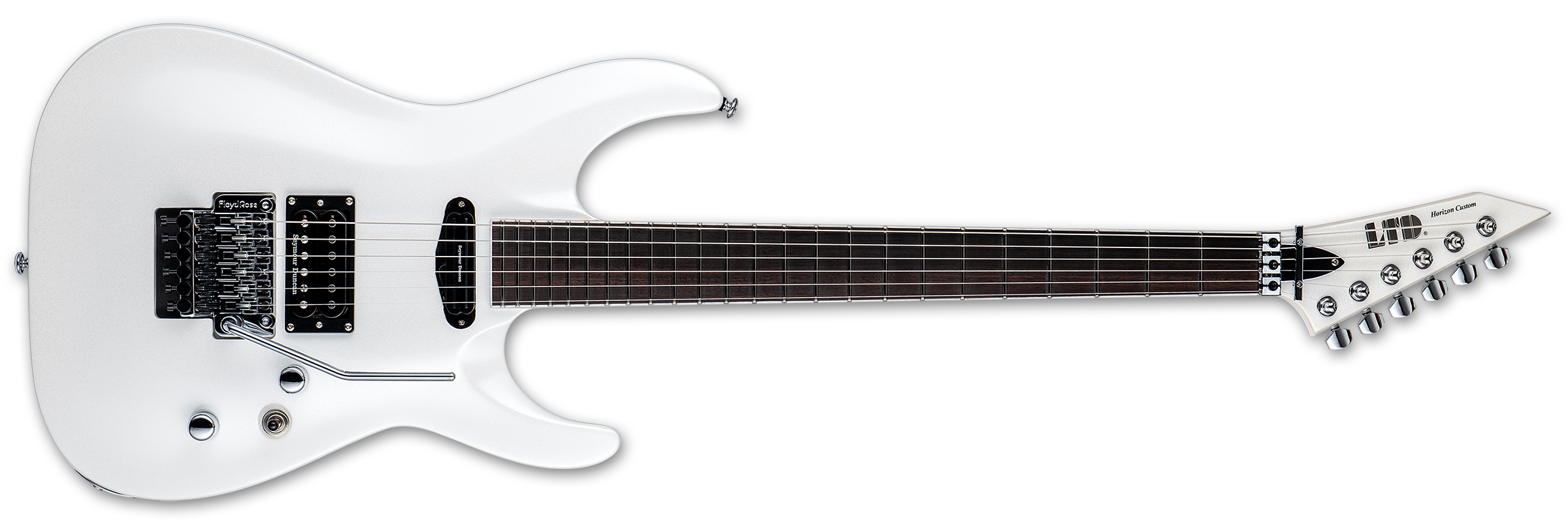 Decisamente chiari gli obiettivi di LTD dietro al ritorno della Horizon: semplicità e forza bruta. Ecco allora che l’hardware della nuova versione Custom ‘87 punta ad offrire la solidità e la stabilità necessarie a una seicorde elettrica costruita anche per essere maltrattata. Il ponte della nuova Horizon Custom ‘87 è un Floyd Rose 1000, il quale è abbinato a bloccacorde e meccaniche autobloccanti di casa LTD.