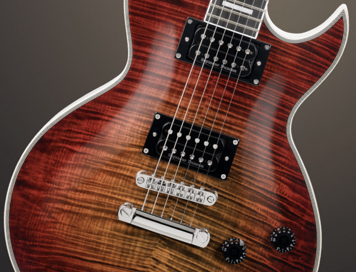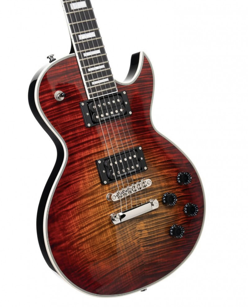 Costruzione: Set-neck – Scala: 24,75” (mm 628) – Body: Mahogany – Top: Flamed Maple – Manico: Mahogany – Profilo manico: C shape – Tastiera: Ebony – Radius: 12” (mm 305) – Tasti: 22 Medium Jumbo – Capotasto: GraphTech Tusq (mm43) – Meccaniche: Grover Rotomatics – Ponte: Tune-o-matic con stop tailpiece – Humbucker: Seymour Duncan SH-2N e SH-4 – Controlli: 2x Volume, Tone – Selettore: 3 posizioni – Hardware: Nickel – Corde: D’Addario EXL-110 – Finitura: Flaming Burst
