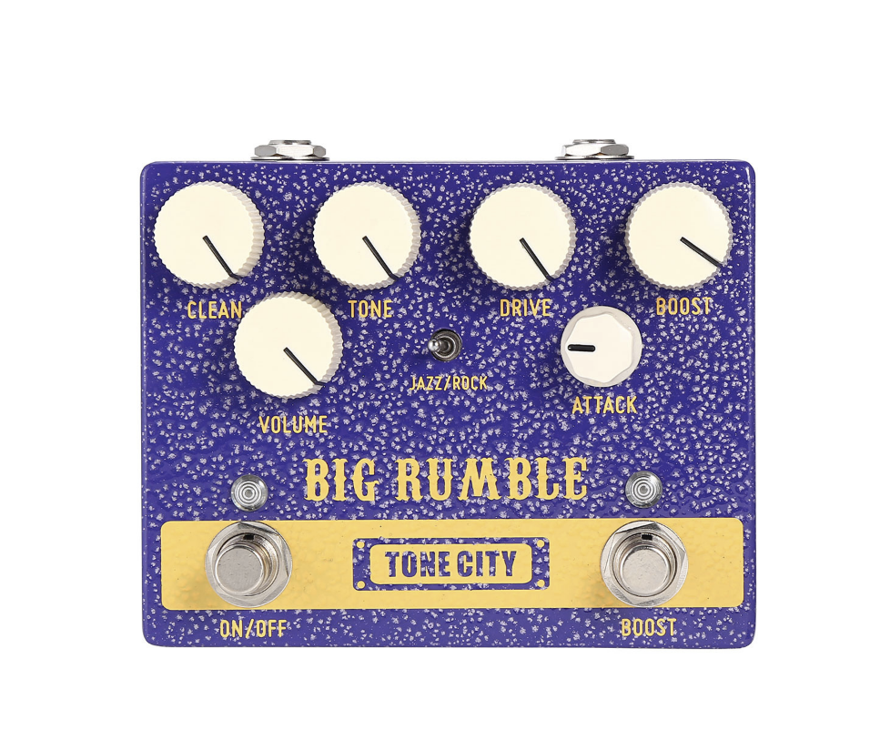 Big Rumble (Overdrive/Boost) – Promette di suonare George Benson, Pink Floyd e Metallica, semplicemente cambiando le impostazioni, restituendo Overdrive e Boost totalmente indipendenti, da vero amplificatore! Clean (sezione OD) per la perfetta miscela tra il segnale pulito e il segnale distorto, Attack per la regolazione chirurgica della pasta del suono e switch Jazz/Rock. Si aggiungono alla dotazione i controlli Tone, Drive, Boost e Volume. Due gli switch a pedale On/Off e Boost. Finitura chassis: viola con superficie ruvida. Prezzo: Euro 129,00