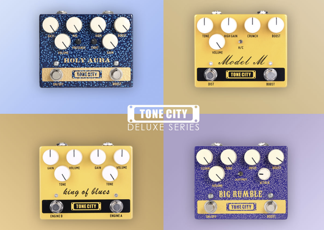 Alla nutrita serie di micro-pedali per chitarra, oggi Tone City affianca quattro pedali nel formato a doppia unità – Model M, King Of Blues, Big Rumble, Holy Aura – li raccoglie nella Deluxe Series e li progetta per consegnare distorsione, hi-gain, overdrive, boost... di eccellente qualità.
