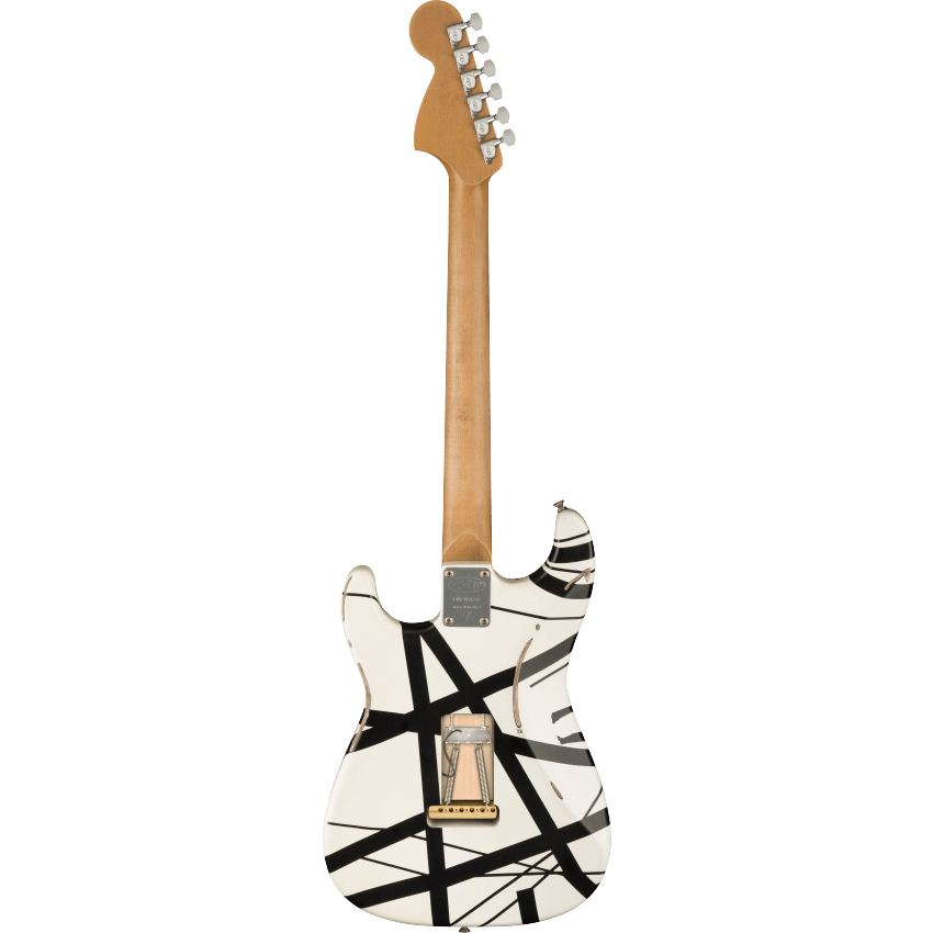 Body: tiglio – Manico: acero (quartersawn) – Tastiera: acero – Radius: 12-16” compound – Tasti: 22 jumbo – Capotasto: mm 43, ottone – Meccaniche: Gotoh – Ponte/Tremolo: Fender Stratocaster Syncronized con sellette regolabili – Hardware: cromato – Pickup: EVH Wolfang Humbucker – Controlli: Volume con EVH Bourns Low Friction/Treble Circuit – Corde: EVH Nickel plated Steel (009-042) – Custodia: gigbag – Made in Mexico – Prezzo: Euro 1.409,00
