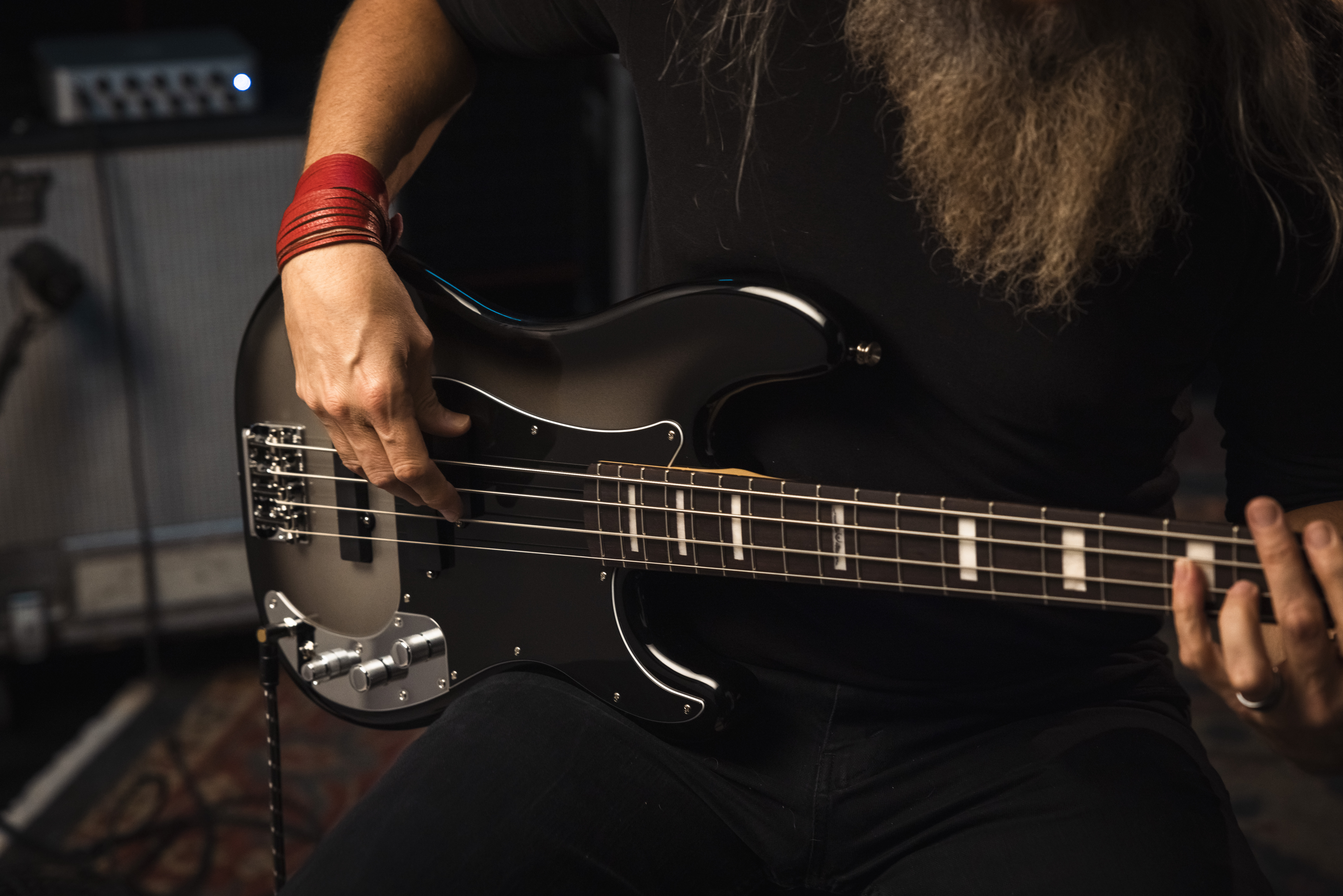 Peculiare anche la finitura Silverburst di body e paletta, scelta da Sanders perché si amalgami con le atmosfere del palco dei Mastodon, e così anche l’incisione custom Emperor of Sand al 12esimo tasto e quella sulla placca posteriore che alloggia le 4 viti: un disegno stilizzato, ispirato alla copertina di Remission (2002), l’album del fragoroso debutto della band. La decal Troy Sander sul retro della paletta completa i connotati estetici del suo nuovo Precision.