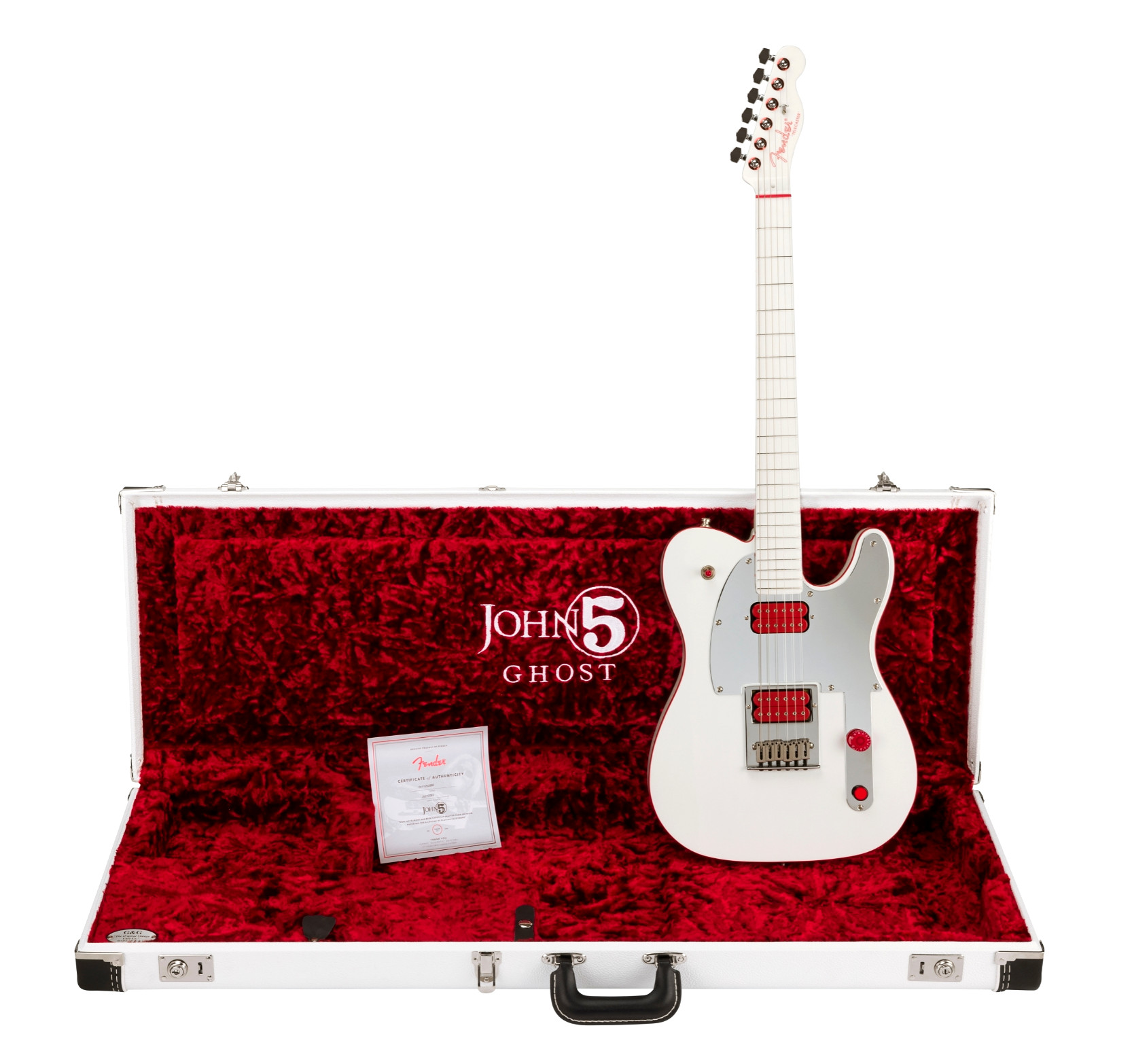 E’ proprio all’insegna della (estrema) versatilità e della marcata identità di John 5, che Fender dà vita alla Ghost Telecaster, seicorde elettrica in finitura Arctic White con accenti Rosso Fuoco, realizzata in edizione limitata a 600 esemplari. Prezzo USD 2.999,00