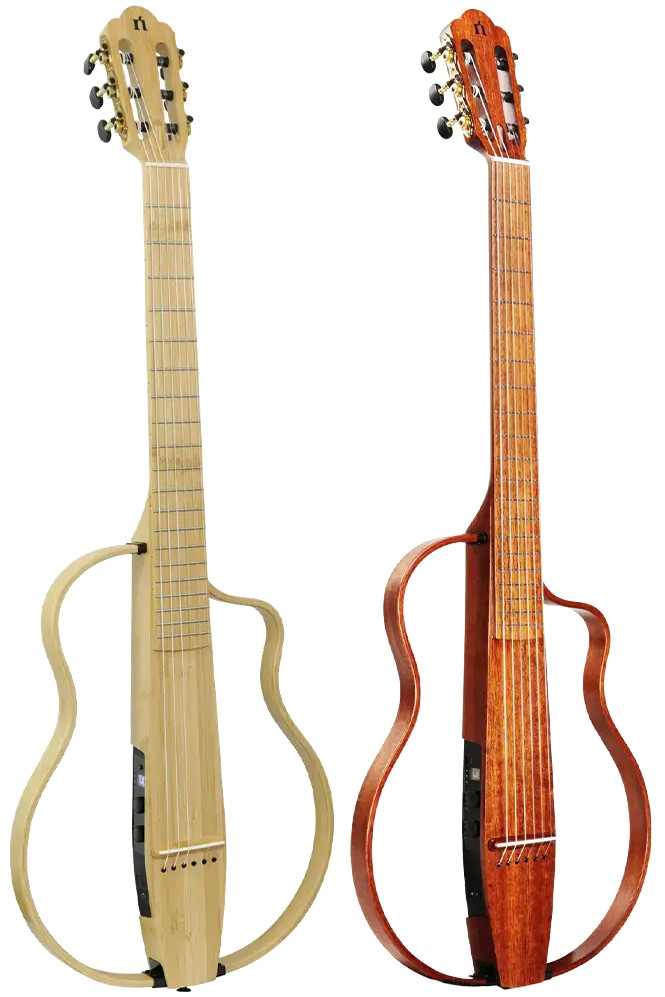 La serie NBSG si compone dei seguenti strumenti: chitarra Silent classica in bamboo con corde in nylon e finitura Natural; chitarra acustica Silent in mogano, oppure bamboo (in finitura Black), con corde in metallo; e basso acustico Silent in mogano, fretted o frettless (con o senza tasti).