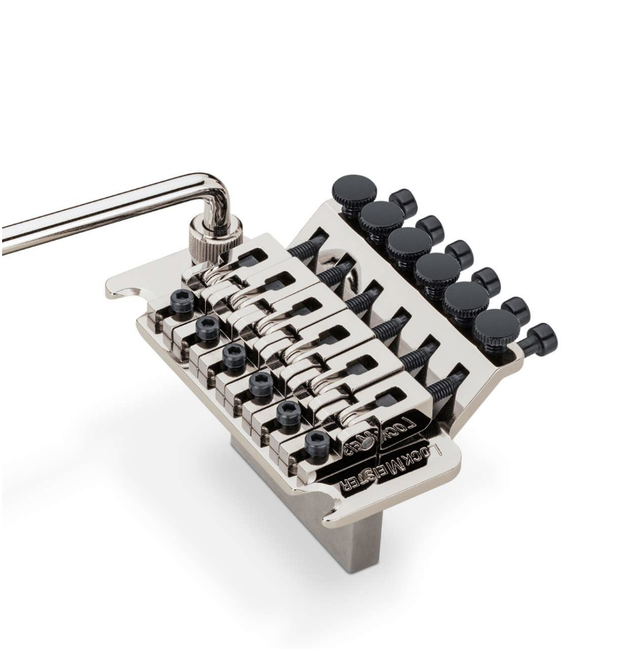 Ebbene, Schaller offre una soluzione a tutto questo con il nuovo Lockmeister 6: il primo sistema di vibrato bloccante con i raggi sia del capotasto, sia del ponte, customizzabili.