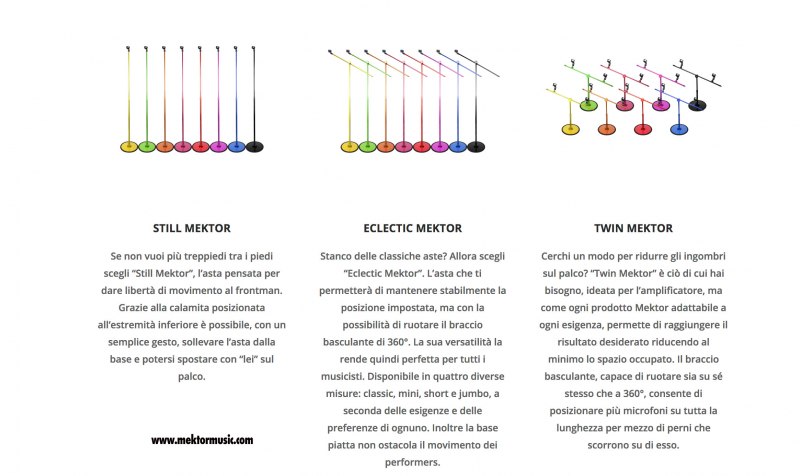 Ma non è tutto: Mektor mette a disposizione una vasta gamma di colori così che ciascun musicista possa richiedere la propria asta customizzata in base a gusti ed esigenze di scena.