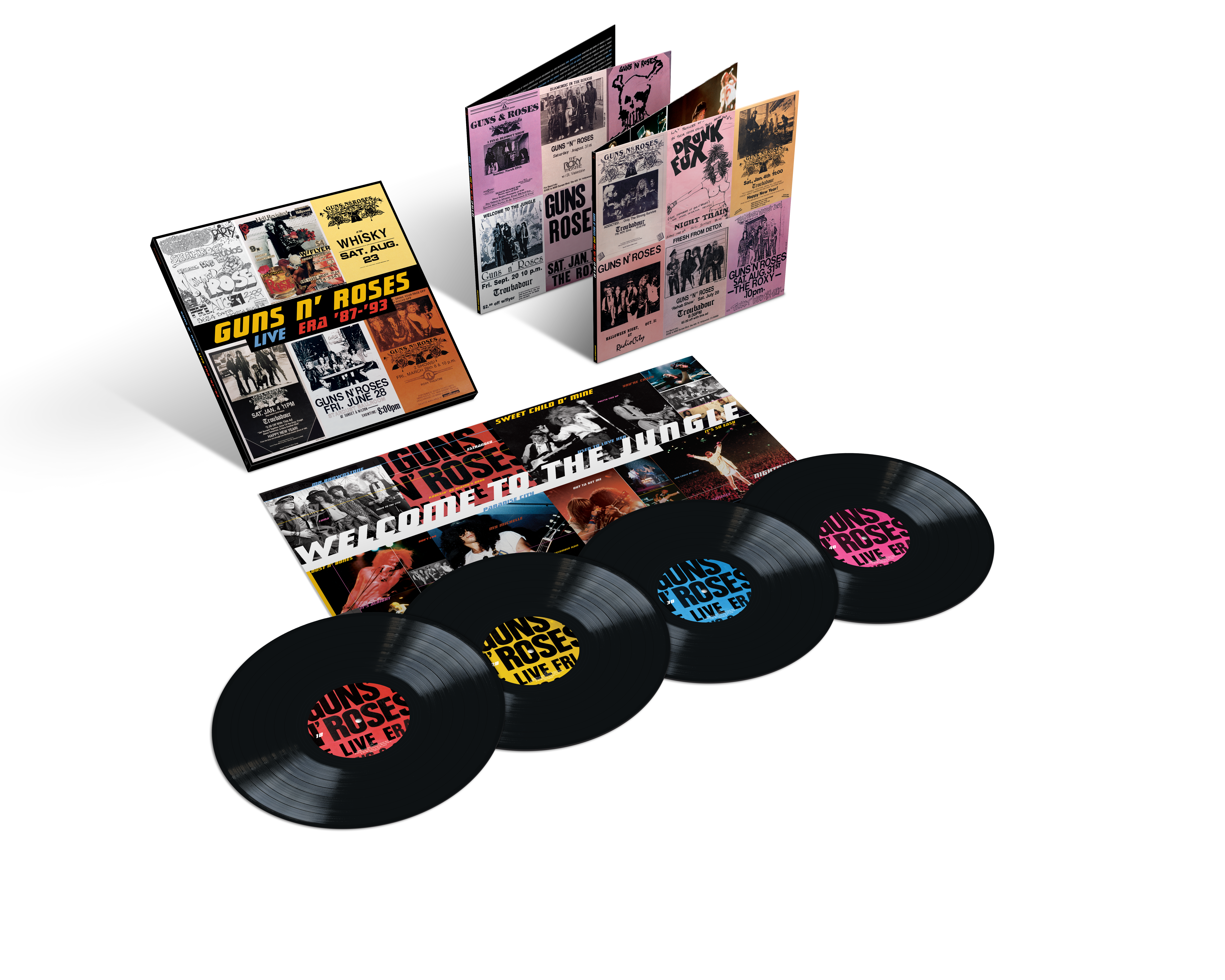 23 brani costituiscono la tracklist di Live Era 1987-1993", tra cui "November Rain", "Sweet Child O' Mine", "Welcome To The Jungle", "Don't Cry", "Paradise City", “Coma”, giusto per citare qualche titolo, registrati allora dal vivo su nastri analogici, ed ora rimasterizzati e raccolti nel boxset. Tre i formati proposti: 4LP colorati, 4LP neri 180gr e 2CD.