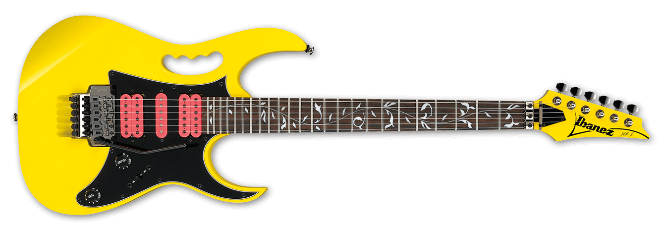 La nuova Steve Vai JEM-JRSP, la iconica seicorde dotata dell’impugnatura nel body (Monkey Grip) e degli intarsi floreali (Tree of Life) sulla tastiera, viene proposta in due finiture fluo, Pink e Yellow, oltre che nella versione mancina in finitura White.