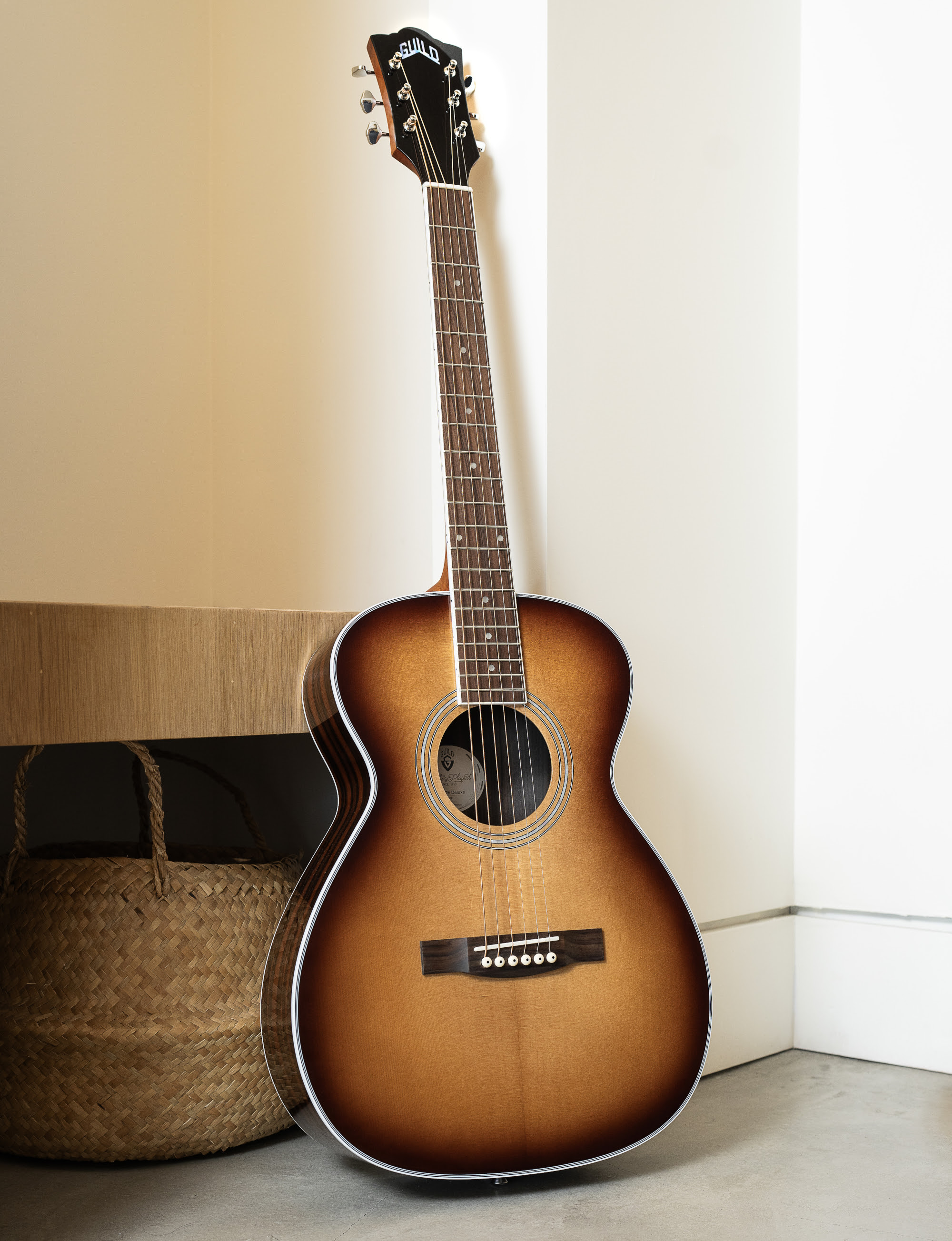 Fondo e fasce sono in Ebano Striato ad assicurare al suono presenza e sustain, mentre il top è piatto, in Abete Sitka, per restituire brillantezza e cristallinità (medie frequenze incluse). Le catenature sono di tipo Scalloped X, mentre la scala sfodera un valore di mm 629: in sostanza, Guild cattura il concept della serie M e traghetta sulla neonata chitarra quelle connotazioni che rendono la serie un best-seller da sempre.