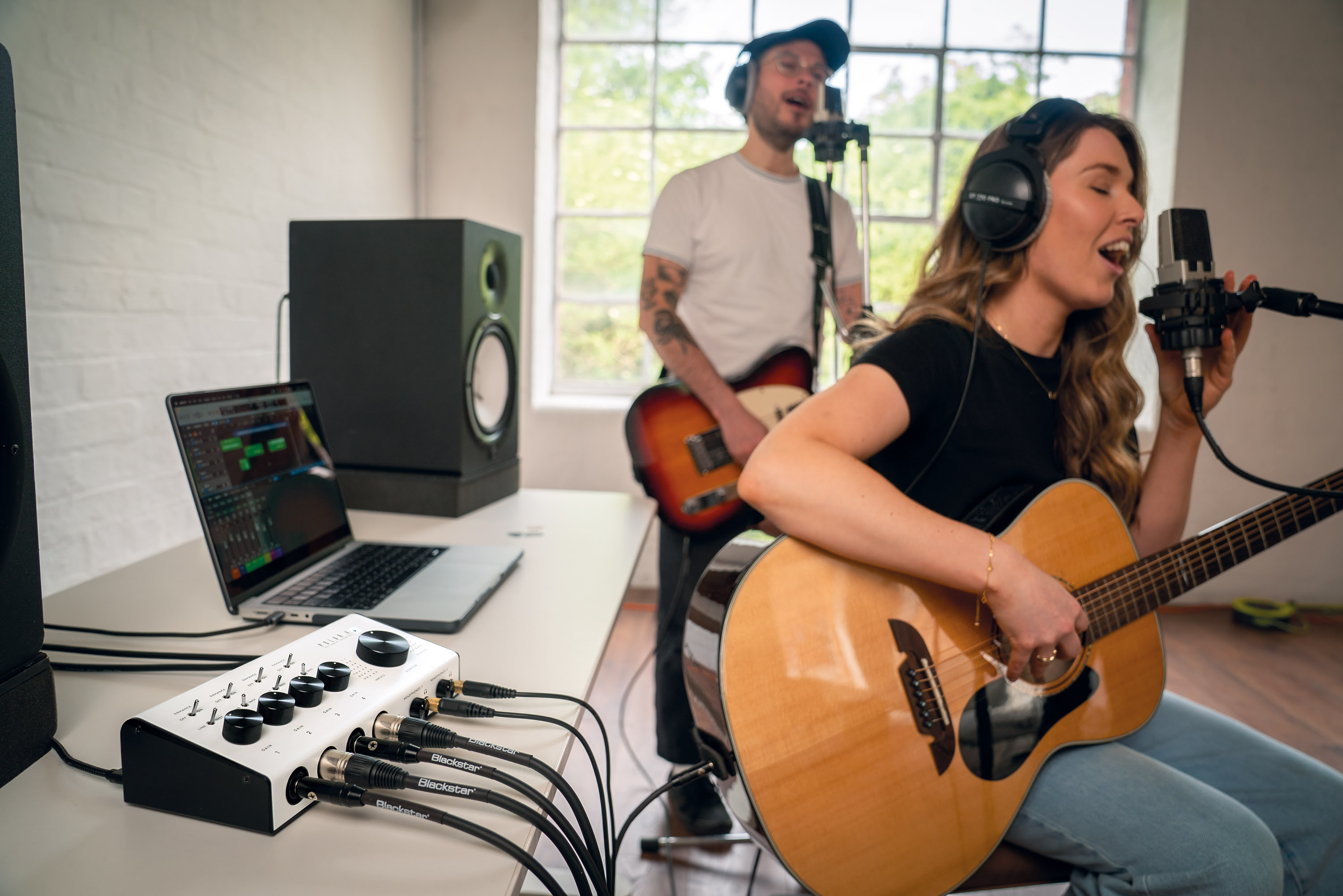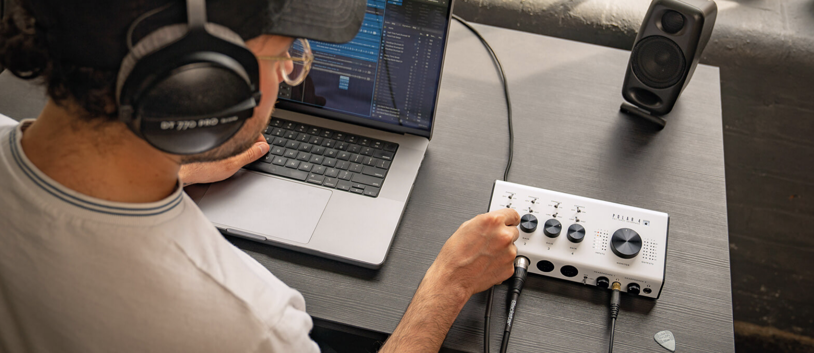 Sul pannellino frontale della Polar 4 trovano posto le prese dei quattro canali (Outputs), due prese per le cuffie (Headphones 1 e 2) con il rispettivo controllo del volume, più lo switch on/off +48V per i microfoni che necessitano di alimentazione phantom, visto che la nuova interfaccia Blackstar si rivolge anche al chitarrista che si accompagna con la voce. Allo scopo, l’interfaccia incorpora un preamp per microfono basato sui modelli vintage più rinomati e di qualità da studio, affinché possa restituire il reale carattere della voce, la quale, attivando la funzione Enhance, acquisisce quella naturalezza ed ariosità che caratterizzano una performance vocale.