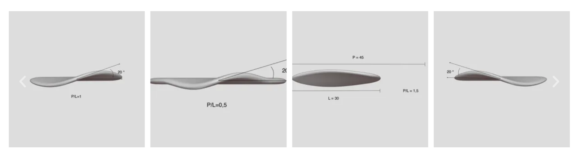 Profili - Profilo a lama a linea retta per pennate nette e il pieno controllo del plettro – Profilo a goccia curvilineo per accompagnare morbidamente la corda verso la punta del plettro – Profilo a cuore leggermente curvilineo per il buon controllo delle pennate e morbidezza dello scorrimento.