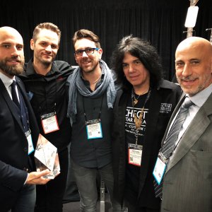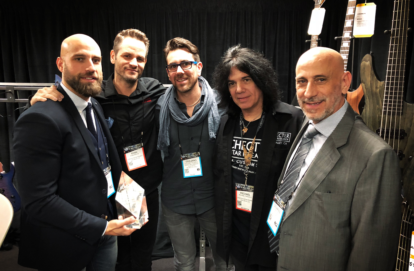 Nella foto (da sx) – Gabriele Capogna (CEO Gold Music), Ryan Martin (Sales Manager Schecter), Giuliano Tricarico (Marketing Manager Gold Music), Michel Ciravolo (President...
