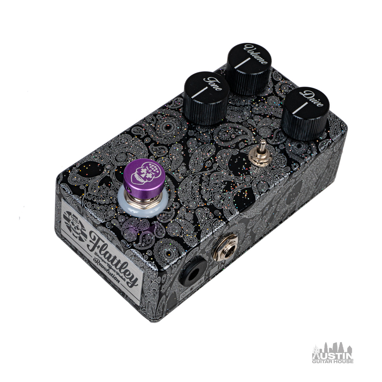 Con un enclosure dalla finitura damascata, in cui si intrecciano dei calavera (teschi messicani), il Revolution Overdrive, pedale di punta di casa Flattley, non passa certo inosservato. Al momento il brand non ne propone la variante economica per la linea Silver, ma un dato è certo, questo pedale sa come farsi riconoscere.