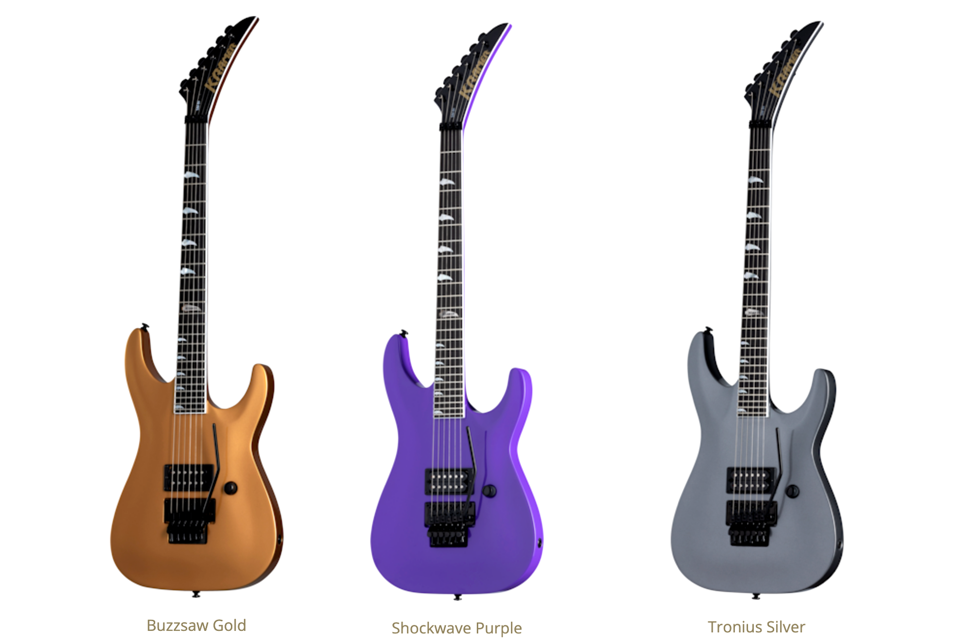 Kramer propone la nuova SM-1H in tre finiture lucide che non passano certo inosservate: Buzzsaw Gold, Shockwave Purple e Tronius Silver.