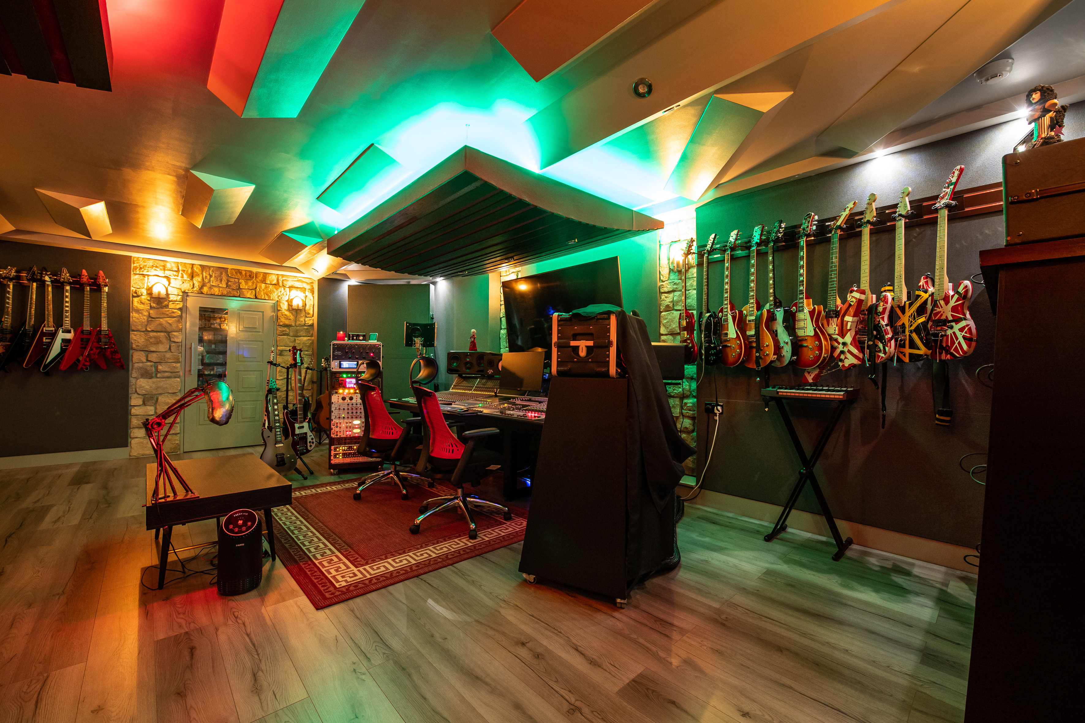 Lo studio – oltre ad essere attrezzato con tutte le più avanzate tecnologie, outboard gear da sogno e un trattamento acustico pazzesco! – si caratterizza anche per l’impatto visivo, per le luci multicolori, per l’atmosfera e per le tante piccole cose che dimostrano la passione di Jeff per Eddie Van Halen (il suo chitarrista preferito), per gli AC-DC e i Kiss, ma anche per vari personaggi dei film horror e per la Coca Cola... Ci sono miniature e oggetti da collezione in ogni angolo, sulle pareti sono appese le riproduzioni dei Cenobiti di Hellraiser, ogni locale dello studio è corredato di oggetti e per ognuno di essi Jeff ha una storia da raccontare. Persino la scala a chiocciola che collega lo studio al loft dall’interno è completamente circondata di chitarre appese ai muri!