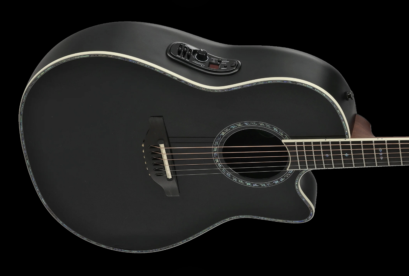 Ovation dota le Europe Line di manico in mogano (5 pcs) e tastiera in ebano, per una combinazione di legni che fa di solidità del suono e stabilità dell’accordatura i suoi assi nella manica. In quanto alle raffinatezze estetiche, la tastiera è abbellita da intarsi Diamond e segnatasti dot in Abalone, quest’ultimo impiegato anche per decorare la rosetta sul top, mentre un binding color crema percorre tutto il profilo del body.