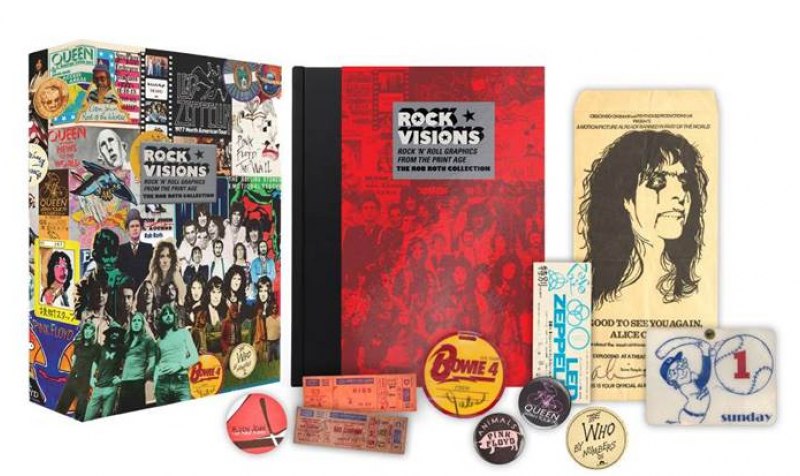 Alice Cooper, Bad Company, David Bowie, Elton John, Journey, Kiss, Led Zeppelin, Pink Floyd, Queen, The Rolling Stones, Steve Miller Band, The Who: 12 titani del rock per una serie di memorabilia raccolta negli anni da Rob Roth e raffigurata in un volume da collezione, ciascuno firmato dalle mani dell’autore, nonché da Sir Elton John.