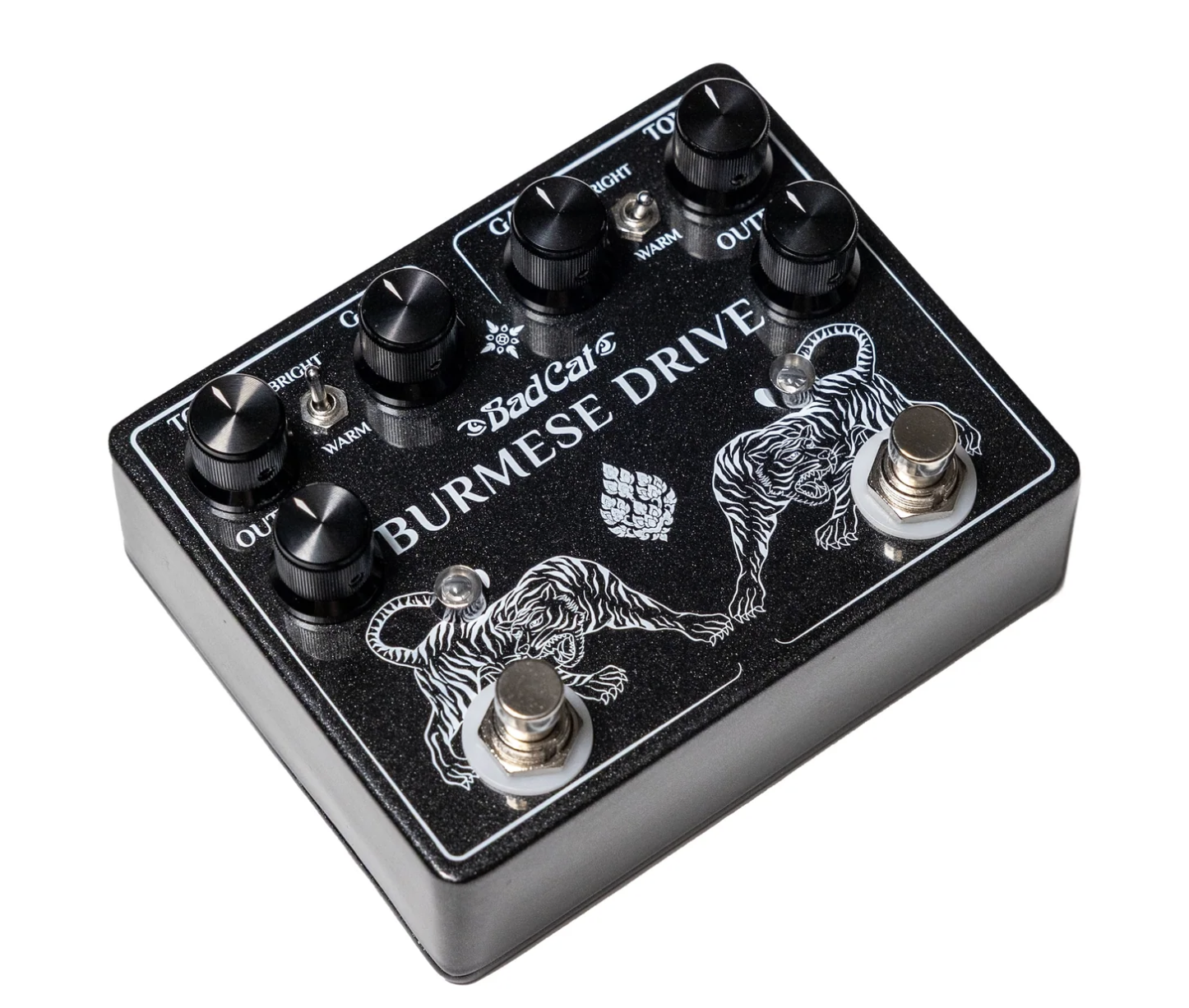 Burmese Drive – Due canali overdrive e l’interpretazione dell’iconico circuito BB-style per la trasparenza e duttilità della pasta sonora. Utilizzabili separatamente o combinati, i due canali del pedale sono dotati di controlli indipendenti (Gain, Tone e Output) a cui si aggiungono gli switch Bright e Warm. Bad Cat progetta questo pedale e lo scopo è consegnare al chitarrista dalle timbriche più vetrose al limite del breakup, alla saturazione delle armoniche, garantendo al contempo la brillantezza e definizione della pasta sonora.