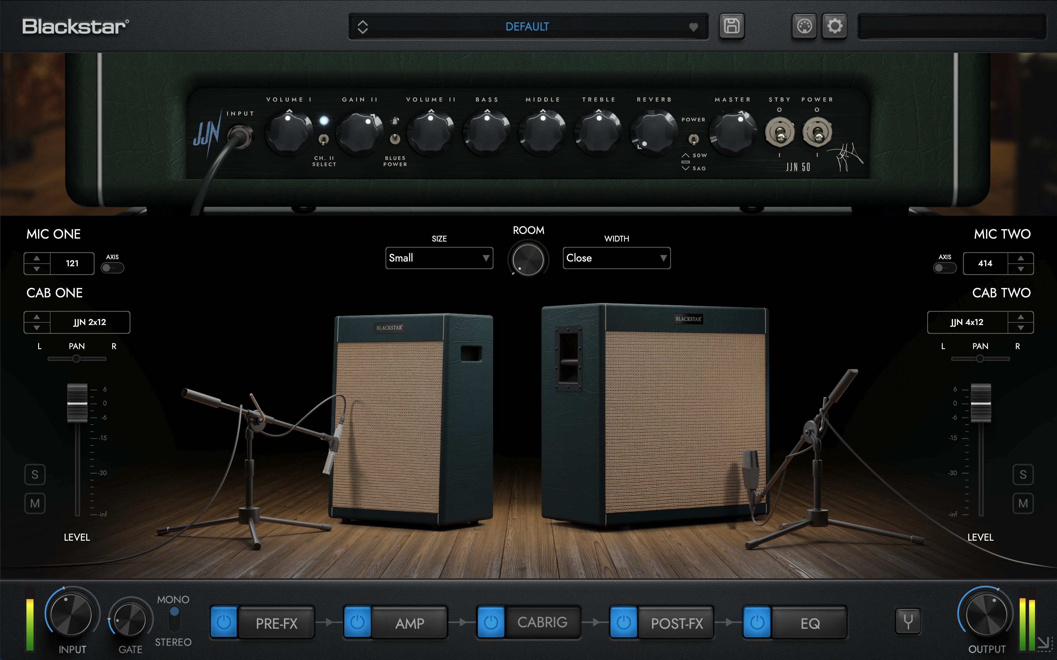 Cuore pulsante della nuova JJN-50 è la tecnologia Cab Rig proprietaria di Blackstar, la nuova generazione di IR basata sulla simulazione di speaker DSP per la dettagliata riproduzione del suono e del comportamento di un cabinet microfonato, con latenza zero e una maggiore flessibilità rispetto a una IR istantanea. Sono tre le patch CabRig integrate nella testata e messe a punto in collaborazione con Nichols – JJN Classic Muscle, JJN Modern Grit e JJN Nashville Basement – pur se la palette di opzioni timbriche si amplia drasticamente via software, tramite le connessioni USB, XLR Out o Headphones. In sostanza, una dotazione raffinata, di grado professionale.