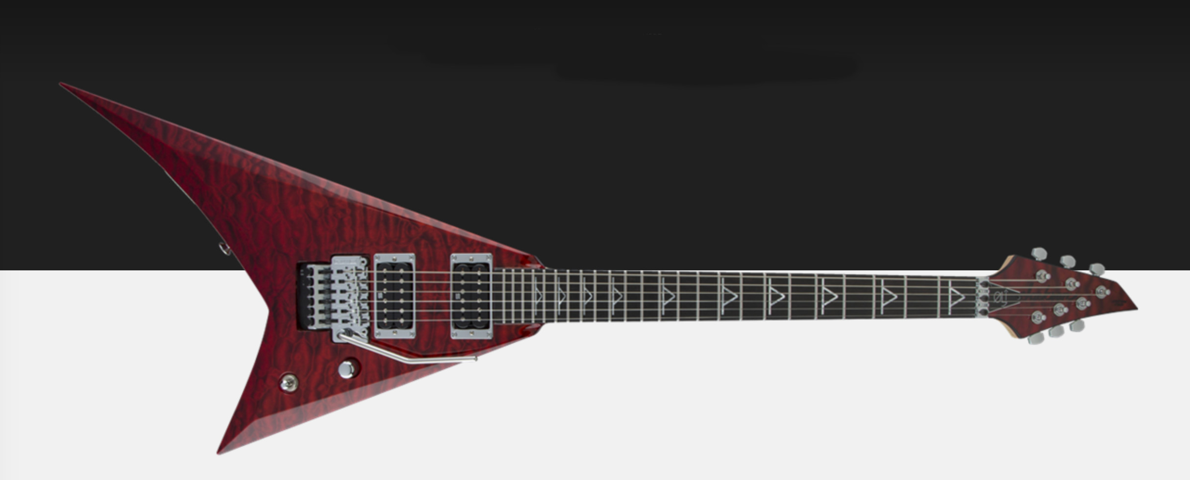 La Jackson Oli Herbert Rhoads ha top da ¾” in acero quilted con finitura Red Rum. Manico in acero (costruzione neck-thru), paletta Jackson 3x3 AT-1, tastiera a curvatura variabile (12/16”), 24 tasti jumbo in acciaio inossidabile, segnatasti a “rune”. Pickup Seymour Duncan Duality Humbucking.