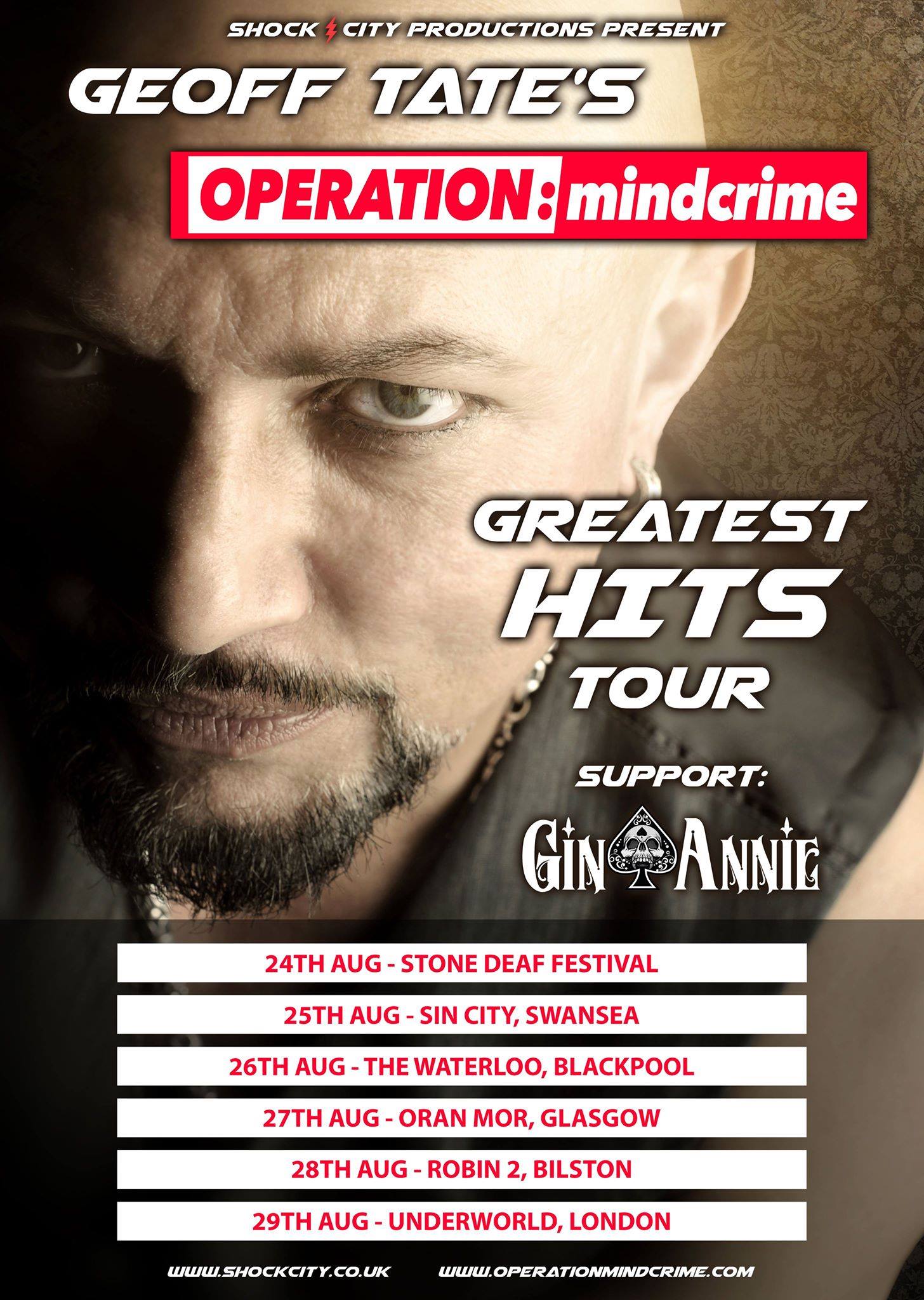 Geoff Tate è uno dei membri fondatori dei Queensryche (prog/heavy metal band che non necessita di presentazioni). Uscito dai Ryche nel 2012, Tate mette in piedi la sua band (Operation Mindcrime) prendendo come nome il titolo dell’album dei Queensryche del 1988 posizionatosi tra i 100 album di heavy metal di tutti i tempi.