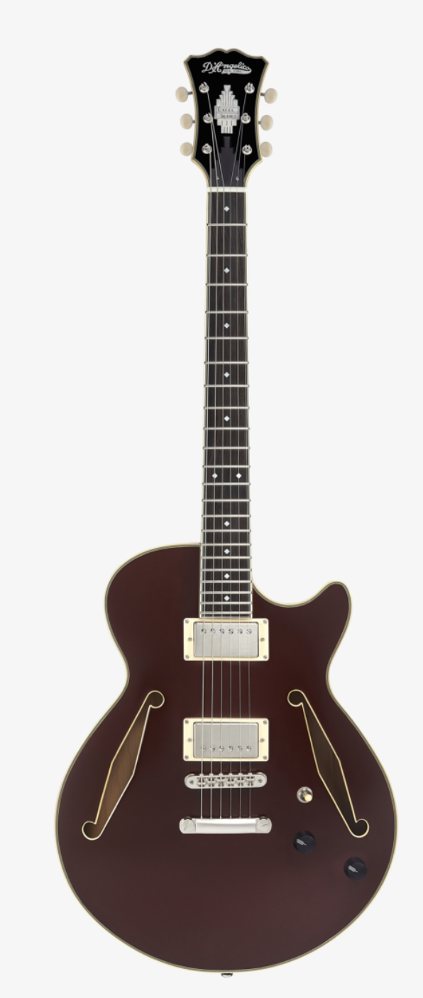 Excel DC Tour – Priva di battipenna e con le buche a effe di tipo Diamond, questa semi-hollow a doppia spalla mancante, restituisce l’essenza del design di casa D’Angelico. Un set di pickup Supro Bolt Buckers, con magnete Alnico 2 al manico ed Alnico 5 al ponte, consegna le timbriche più calde, mentre l’avvolgimento delle bobine in stile anni Cinquanta, restituisce il massimo in quanto a nitidezza ed articolazione, regolabili tramite i controlli ed il selettore a 3 posizioni di bordo.