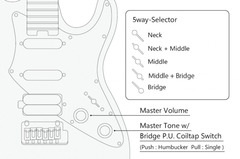 L’elettronica si completa con il selettore a cinque posizioni ed i controlli di Volume e Tone, quest’ultimo dotato di funzione push/pull per lo split del CPH-1.