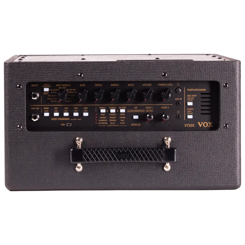 Entrambi i combo – VT20X e VT40X – sono alloggiati in cabinet bass-reflex proprietari, pensati per garantire una risposta sulle basse frequenze estesa e controllata, mantenendo proiezione e definizione dalla pratica domestica al palco. La sezione effetti integra moduli ispirati a stompbox classici (chorus, compressione, flanger e diverse tipologie di riverbero), configurando i nuovi Valvetronix come soluzioni all-in-one. Accordatore integrato, porta USB, ingresso Aux e uscita cuffie, completano la dotazione tecnica dei due nuovi combo.