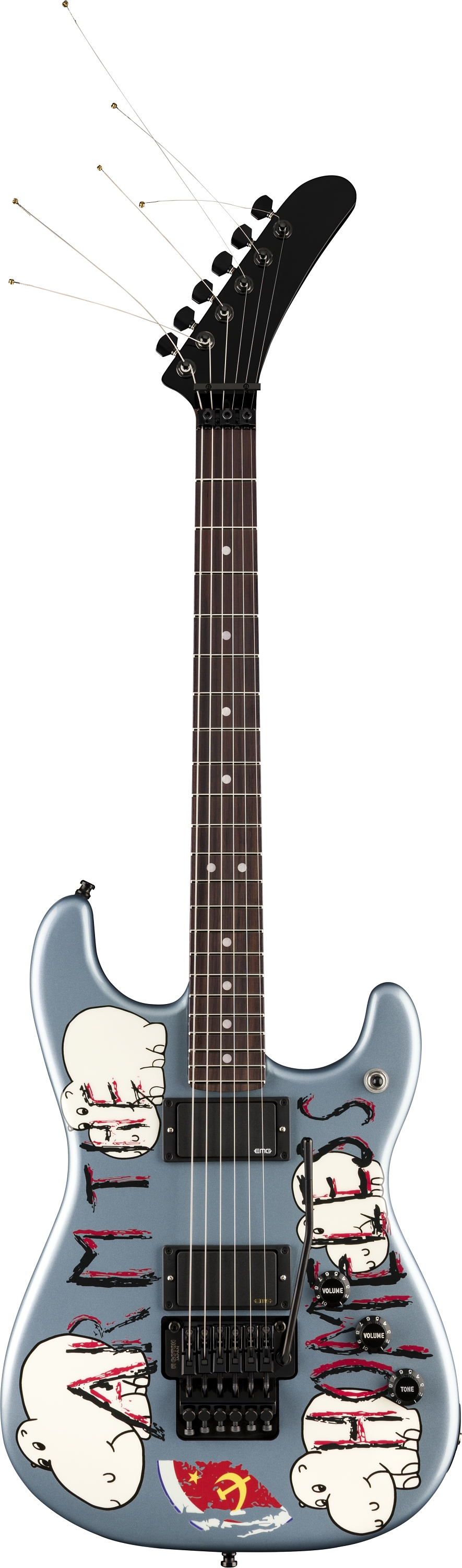 La storia della “Arm The Homeless” è frutto di un’indomabile sperimentazione e creatività. Quella che doveva essere una chitarra a sé stante, pesantemente customizzata, fatta di parti spaiate e con un hardware poco ortodosso, diviene l’estensione del suono e della visione di Tom Morello. Sul body di questa Strat-style campeggiano quattro ippopotami sorridenti e l’imponente scritta di-protesta “Arm The Homeless” disegnati a mano, oltre che il resto sgualcito di un adesivo con falce-e-martello. In poche parole, quella chitarra che rivela il rifiuto alle convenzioni timbrico/sonore e con esse i paradigmi estetici più canonici, è perfetta nell’assecondare il cocktail di riff infuocati, dive bomb e uso smodato del kill-switch, con cui Morello modella il suono spinto e audace di Rage Against The Machine (1992-1999), Audioslave (2001-2017) e Prophets Of Rage (2010).