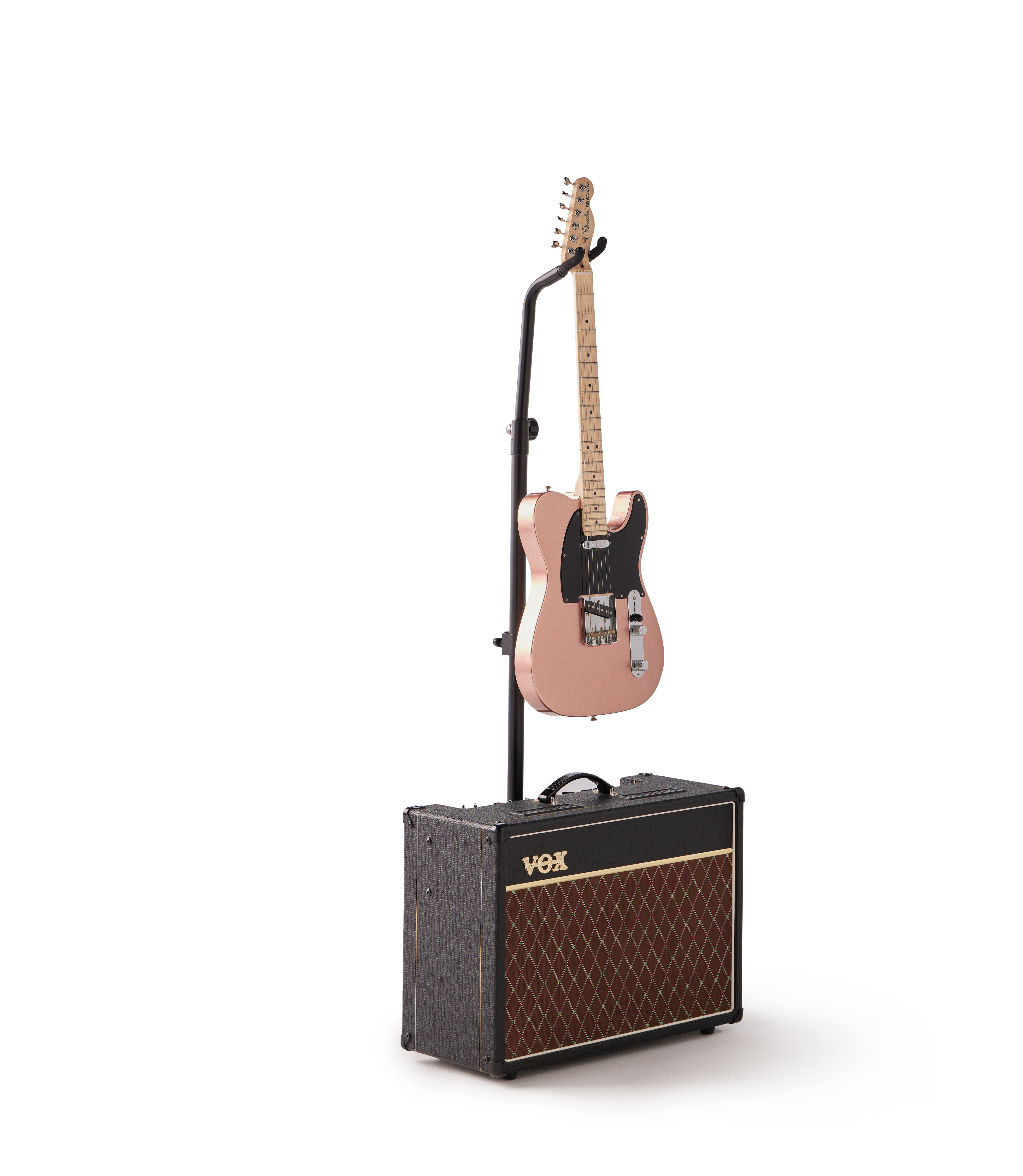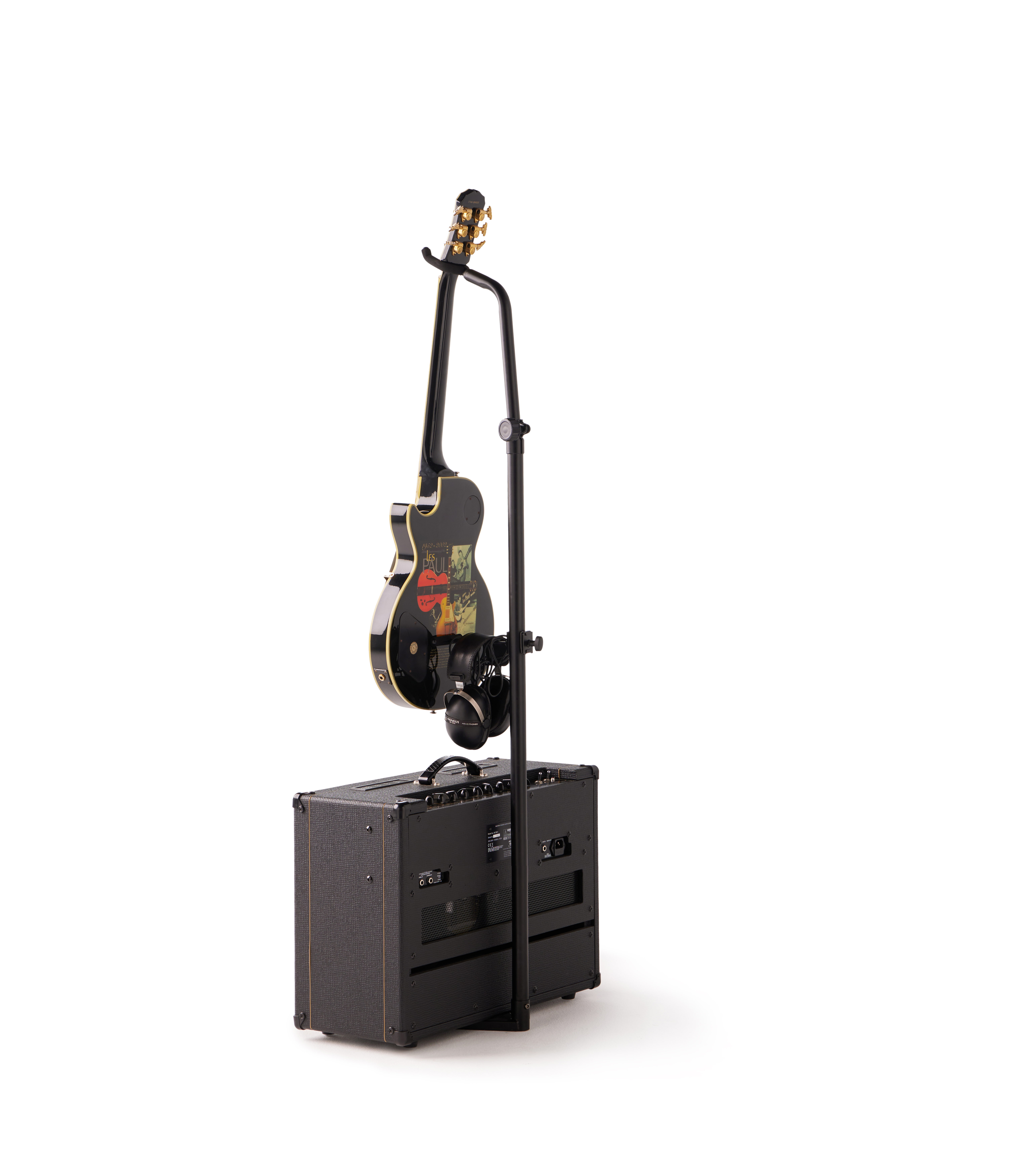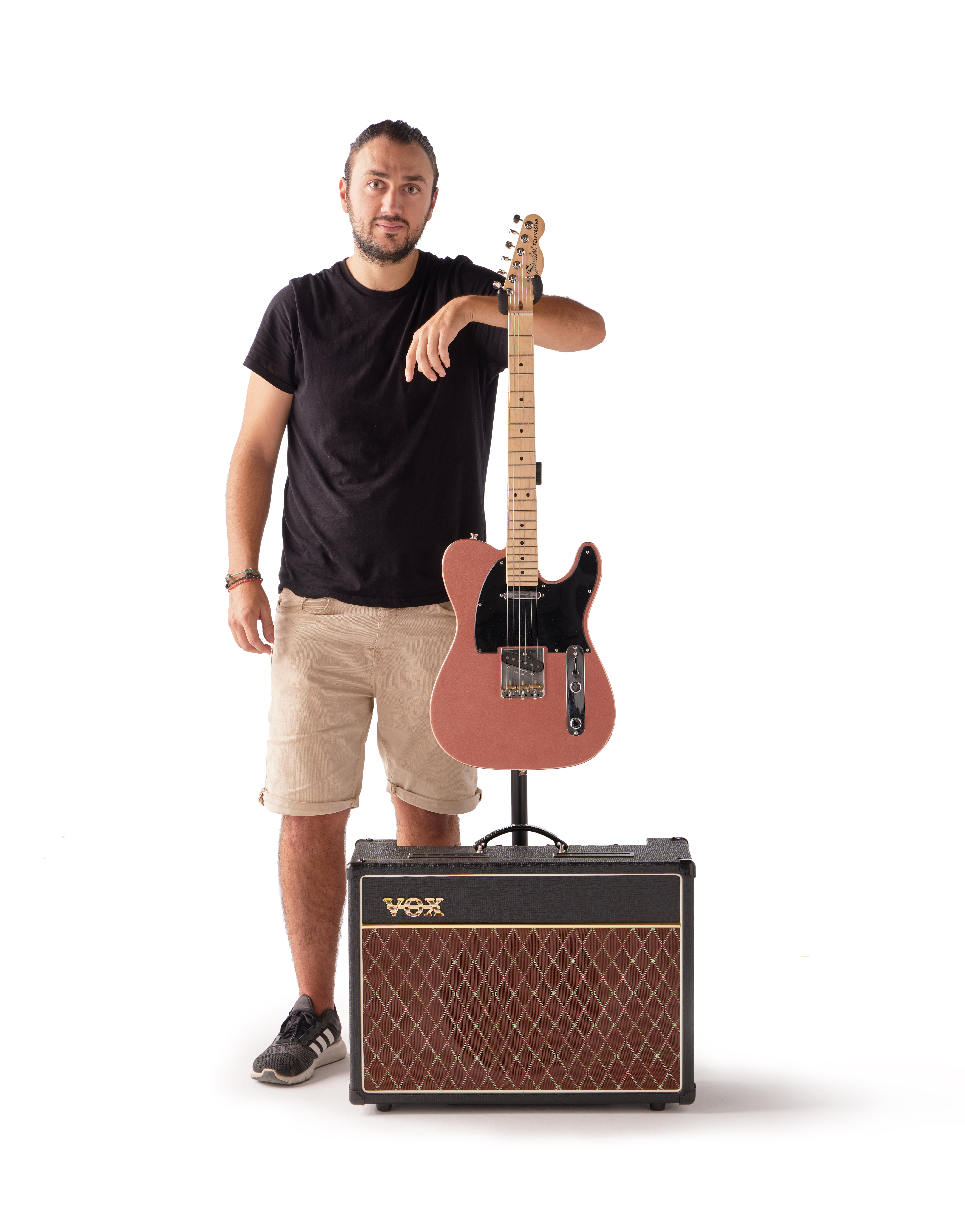 chitarra, amplificatore, cavi, plettri, capotasti e ogni altro accessorio che compone il set di un musicista.