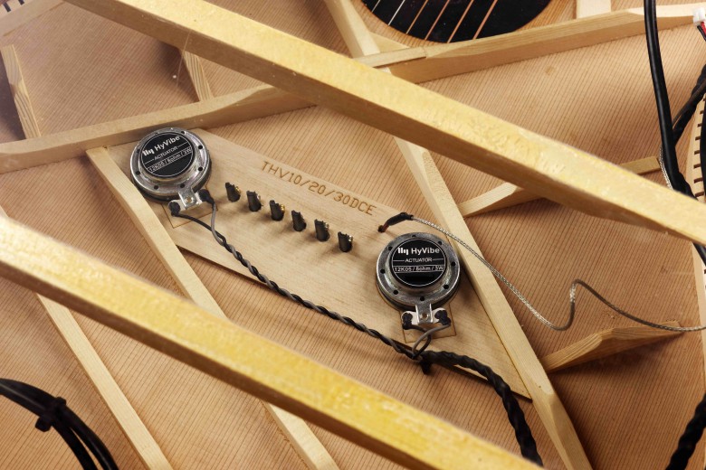 La filosofia alla base del progetto resta quella del “sound enhancement through vibration”: la chitarra non riproduce un segnale elaborato attraverso altoparlanti, ma sfrutta la propria tavola armonica...