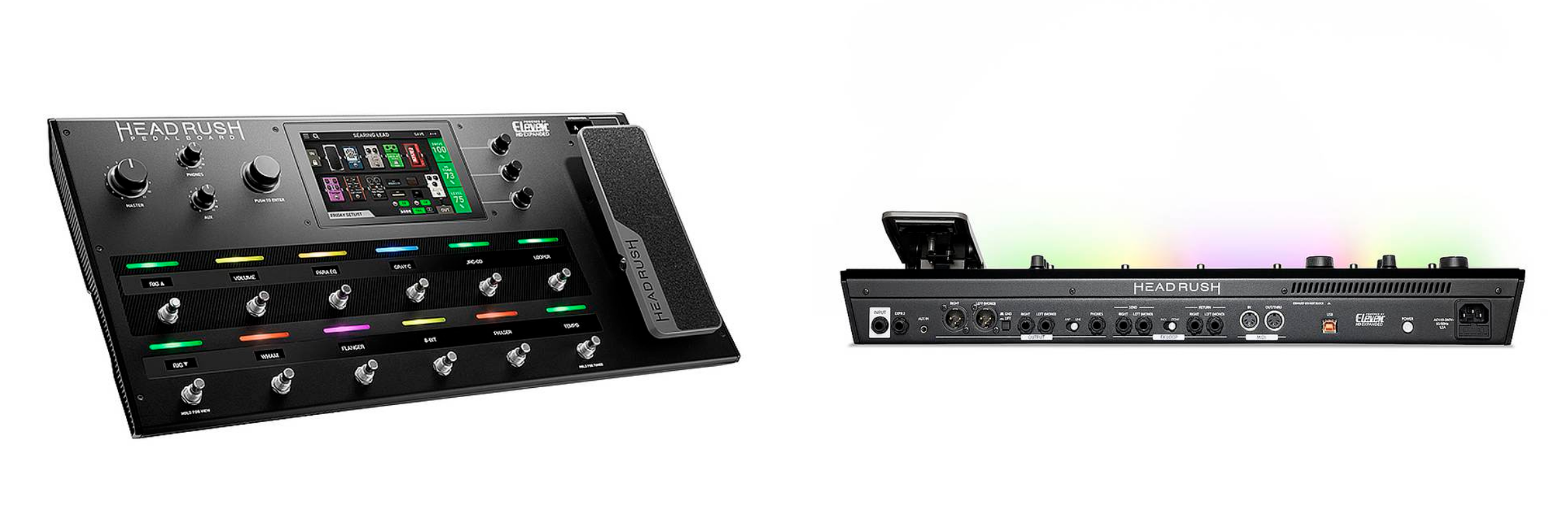 Dotate di un processore quad-core finemente configurato ed alimentato dall’esclusivo software DSP Eleven® HD Expanded ™, HeadRush Gigboard e Pedalboard offrono modelli di amplificatori, cabinet, microfoni e FX realistici e reattivi: il tutto, per il chitarrista, e condensato in un apparecchio da collocare sul pavimento. Il touchscreen da 7 pollici consente al chitarrista di toccare, scorrere, trascinare e rilasciare, allo scopo di creare e modificare i rig all’istante e in un modo realistico e intuitivo senza precedenti.
