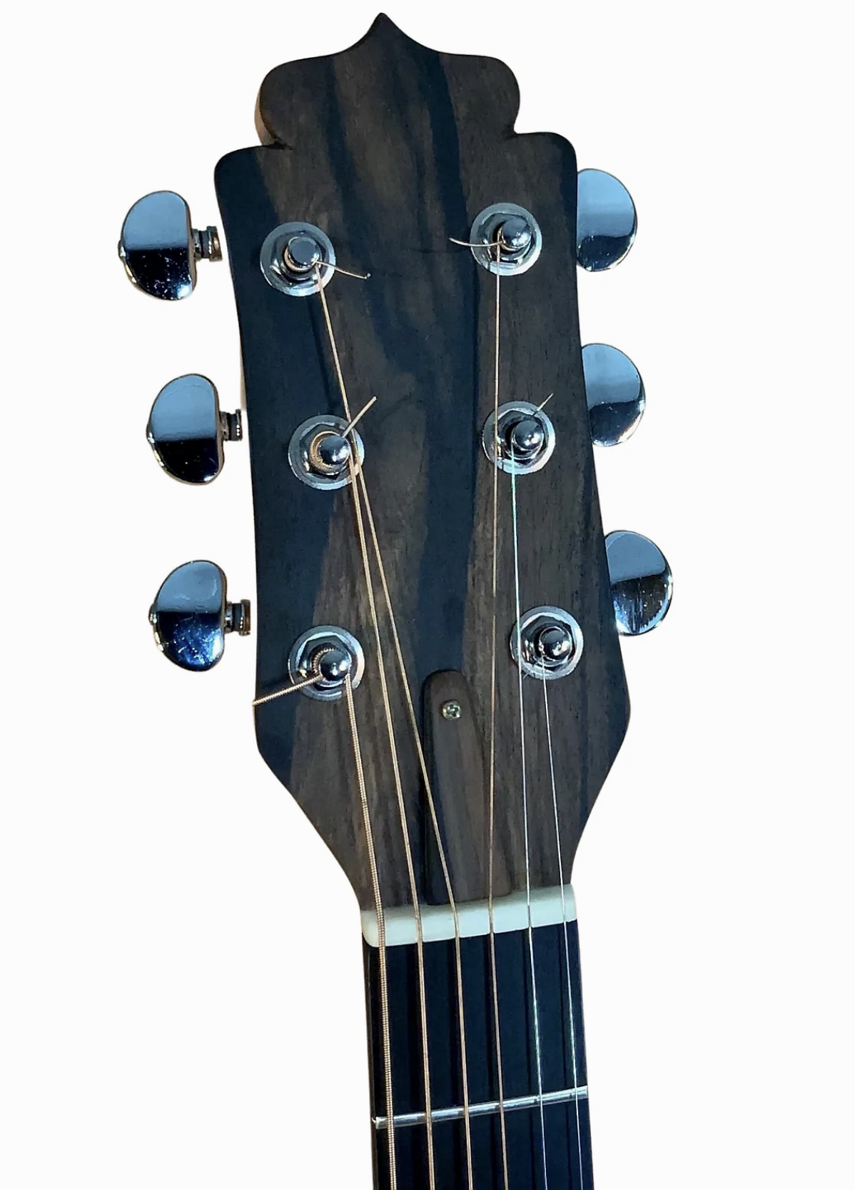 – Segnatasti: dot – Capotasto: Osso, mm 52 – Paletta: Rosewood – Meccaniche: Manuel Style, Goldplated – Ponte: Rosewood con sellette in osso – Elettronica: Fishman Presys Blend – Corde: Hannabach Strings