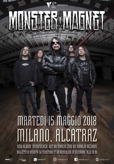 “Monsterfucker” uscirà per Napalm Records il 23 marzo 2018 ed i Monster Magnet raggiungeranno la nostra Penisola a maggio per una data organizzata da Vertigo. www.vertigo.co.it