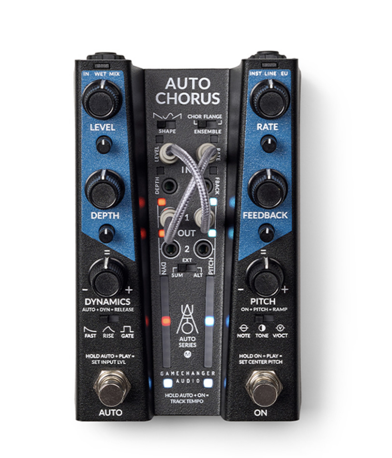 Sono tre i pedali della serie Auto – Chorus, Delay e Reverb – la fusione tra il classico design dei pedali e il coinvolgente mondo della sintesi modulare, come afferma Gamechanger Audio, interpretata non soltanto come evoluzione dell’elaborazione audio, ma come rivisitazione completa di quel che può essere uno stesso effetto a pedale. Ogni pedale della serie, infatti, alimentato da algoritmi differenti, è pensato per restituire il reale tocco del chitarrista, le dinamiche, le note e l’espressività del suo fraseggio, ambientando la sua performance nella modularità timbrico/sonora offerta dal mondo dei synth.