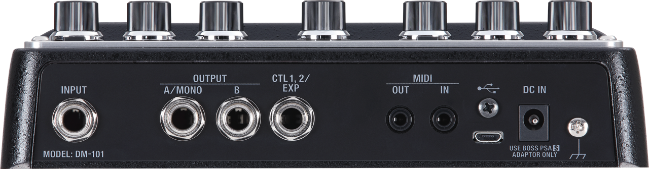 ° Connessioni: Input, Output (A/mono, B) – CTL 1-2/Expression Pedal – MIDI (Out/In), USB, DC In (per alimentatore Boss PSA, incluso)