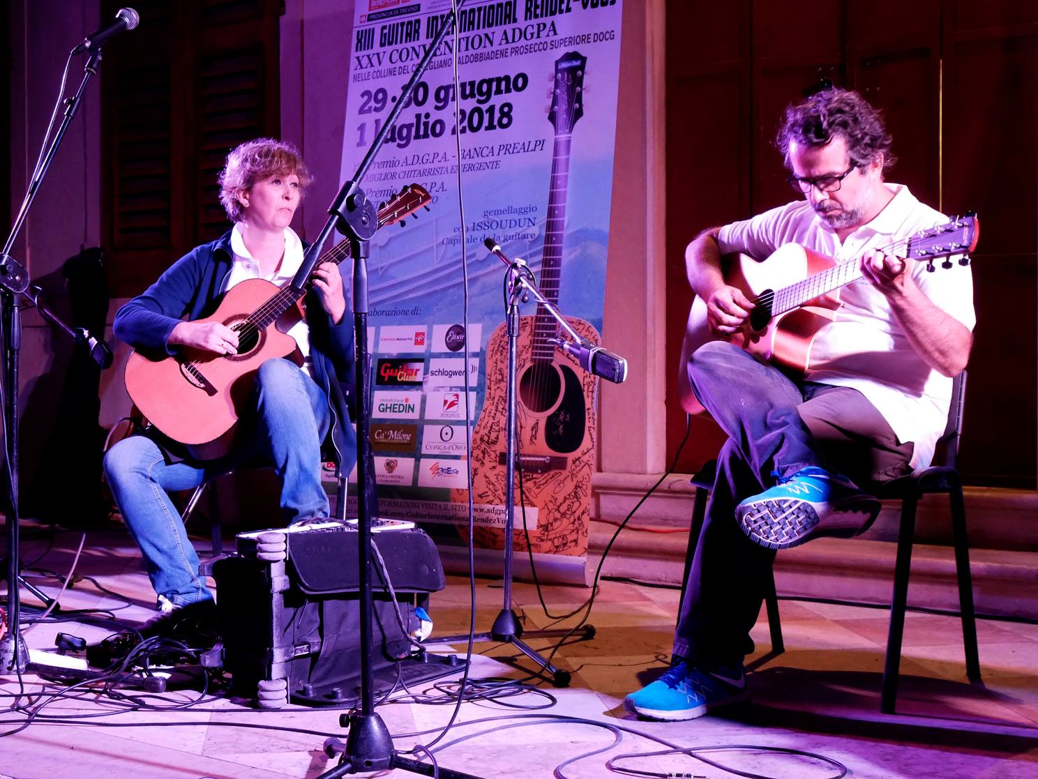 Con Alberto Grollo, di cui si è ribadito il fondamentale ruolo nella creazione del Guitar International Rendez-Vous, lo spettacolo è tornato nell’habitat della chitarra acustica con una composizione ispirata ad una giga irlandese seguita dalla sua ultima opera significativamente intitolata Operativi A.D.G.P.A.