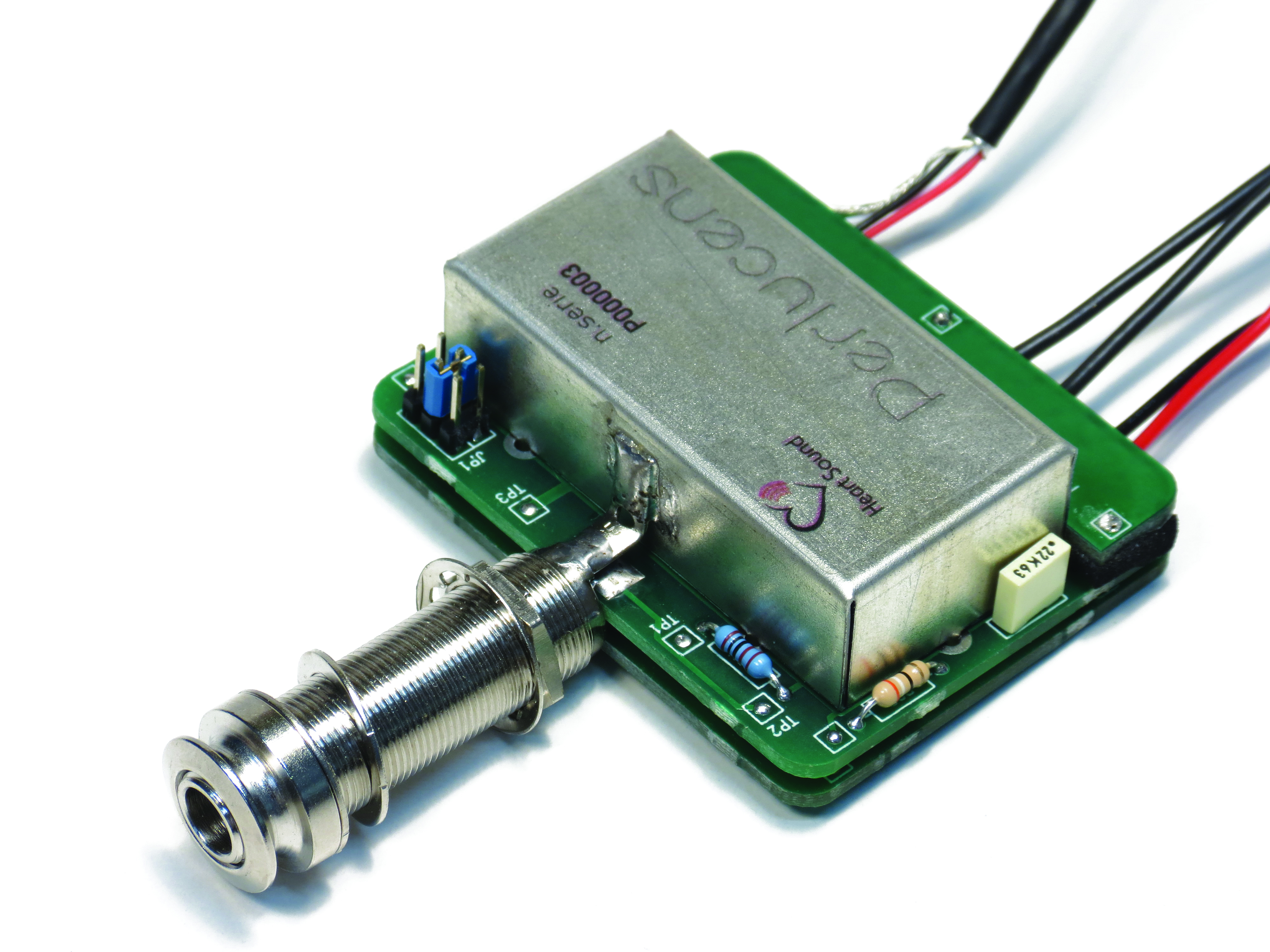 La presa a jack e lo chassis del preamplificatore sono assemblati assieme e trovano posto nella cassa armonica della chitarra, ancorandosi saldamente alla giuntura tra le fasce sfruttando il foro del bottone della tracolla.