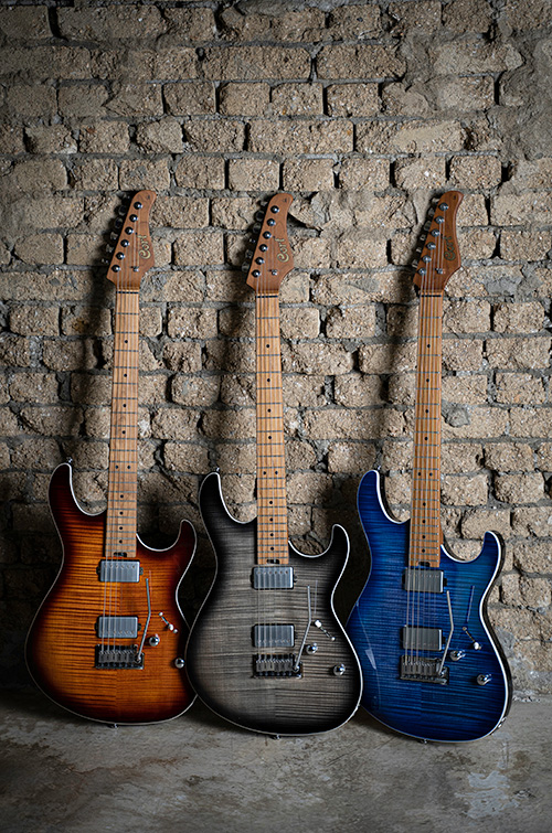 Costruzione: bolt-on – Body: ontano – Top: acero fiammato – Manico e tastiera: acero roasted – Scala: 25,5” (mm 648) – Radius: compound (12”-15,75”) – Tasti: 22 – Capotasto: GraphTech, Black Tusq, mm 42 – Meccaniche: Cort Staggered Locking – Ponte: Cort CFA-III Tremolo – Hardware: cromato – Corde: D’Addario EXL120 – Finiture: Trans Black Burst, Antique Violin Burst e Bright Blue Burst – Prezzo: Euro 600,00 ca.