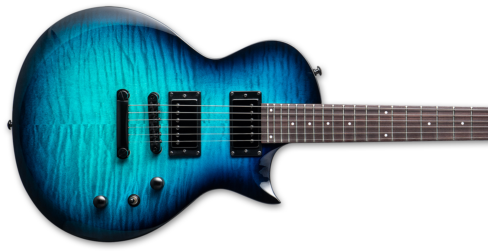 Costruzione: Bolt-on – Scala: 24,75” – Body: Poplar – Top: Flamed Maple – Manico: Roasted Maple – Profilo manico: Thin-U – Tastiera: Rosewood – Radius: mm 350 – Tasti: 24 XJ – Segnatasti: dot – Capotasto: sagomato, mm 42 – Meccaniche: LTD – Ponte: TOM con Tailpiece – Hardware: Black Chrome – Humbucker: ESP LH-150N (manico), LH-150B (ponte) – Controlli: Volume, Tone (con split push/pull) – Corde: D’Addario YB-XL10 (010-046) – Finiture: Blue Burst e Charcoal Burst