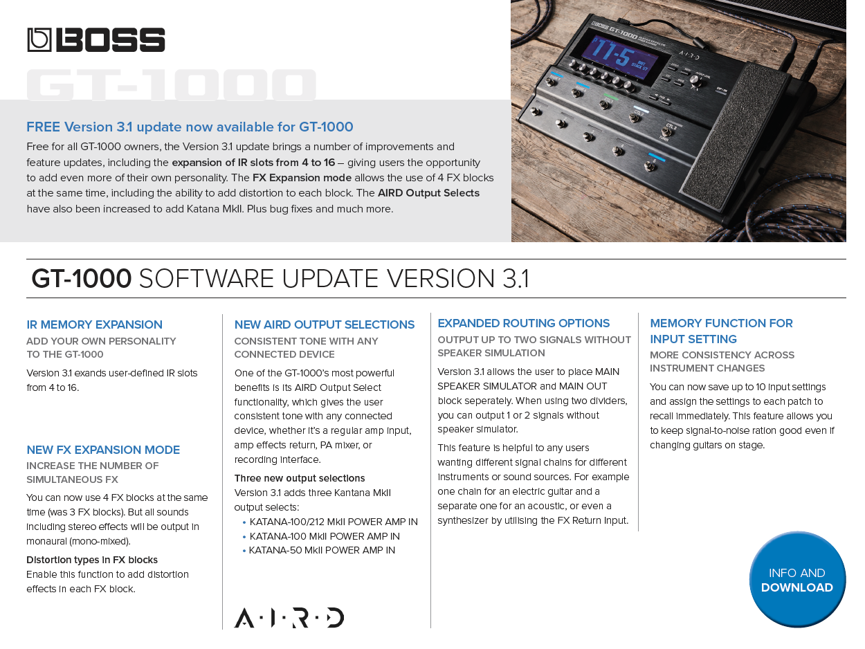 BOSS GT-1000 il nuovo upgrade 3.1 in omaggio