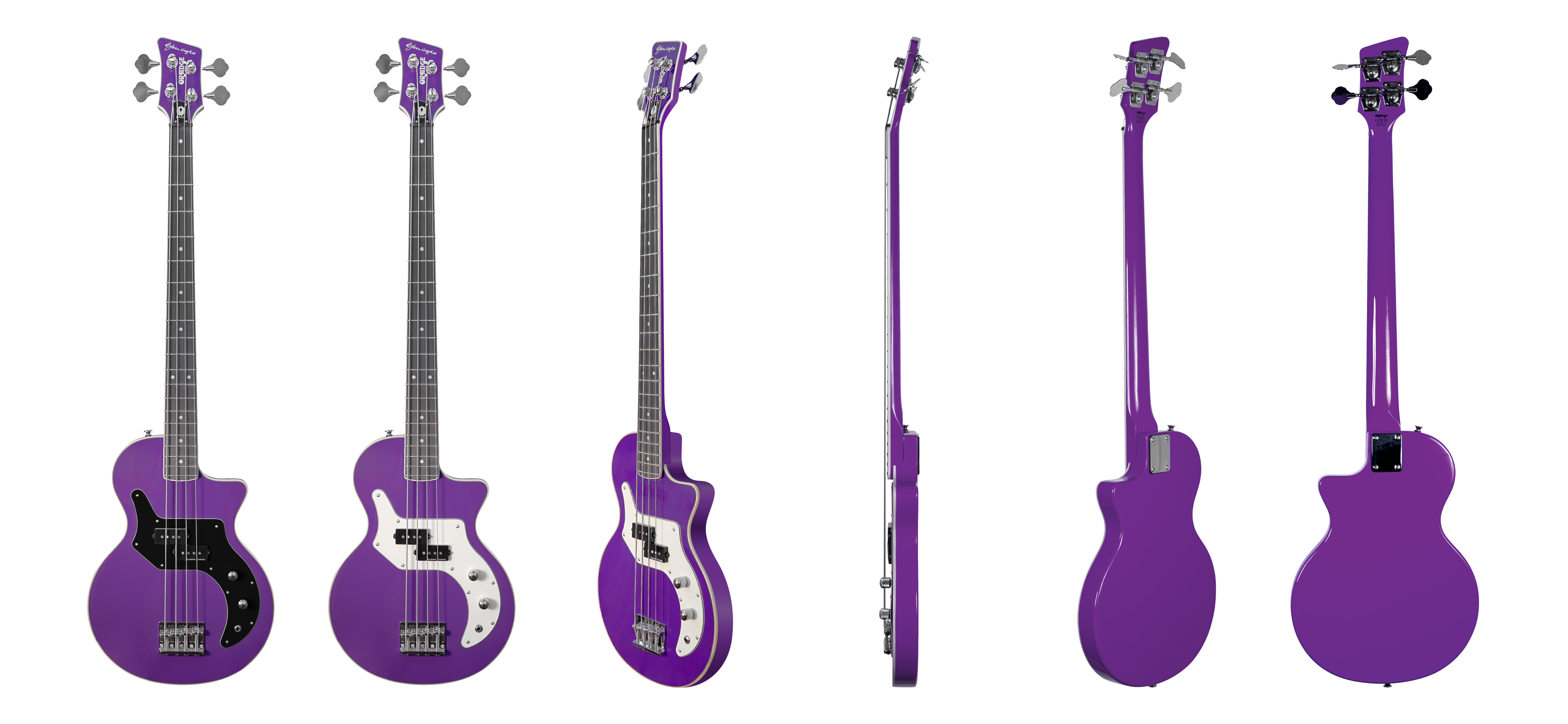 Costruzione: bolt-on – Body: Okoumé – Manico: Maple – Scala: mm 864 – Capotasto: mm 43 – Meccaniche: open gear – Battipenna: Bianco (più Nero in aggiunta) – Elettronica: 1x Seymour Duncan SPB-1 – Controlli: Tone, Master Volume – Ponte: Nickle TopLoading – Corde: 045-105 – Finitura: Purple – Custodia: GigBag