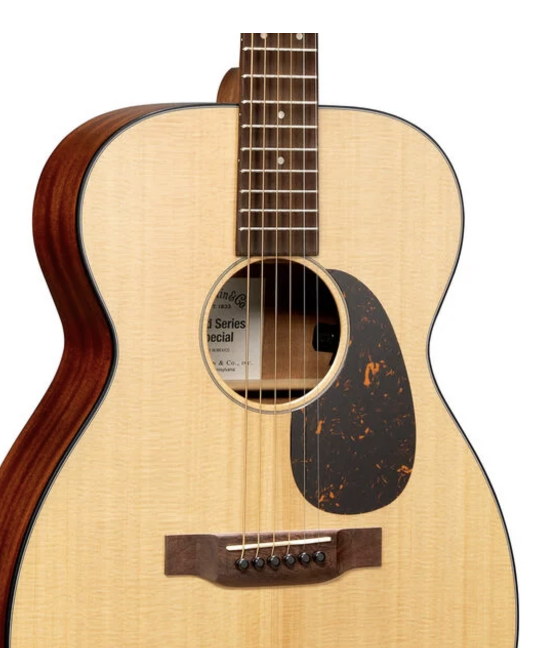 Interamente in legno massello selezionato, il body della 00-10E si propone nella versione Grand Concert (00, secondo la codifica di Martin & Co), un formato dalle dimensioni contenute per l’agile comfort, ma che per questo non rinuncia al balance dello spettro delle frequenze generate, a favore di un suono capace di soddisfare appieno ogni stile, dallo strumming più energico al fingerpicking più sofisticato. La 00-10E, inoltre, è una seicorde acustica elettrificata (E, come suggerisce la sua codifica) provvista pertanto di sistema di preamplificazione: allo scopo, si dota del preamp Martin E1 che, catturando il suono generato, ne consente le regolazioni più fini tramite i controlli Volume, Tone e Phase integrati. A completare la dotazione, l’utile accordatore cromatico di bordo. Riassumendo, non è difficile intuire l’intento di Martin & Co di fare dell’estrema versatilità il punto di forza della nuova 00-10E.