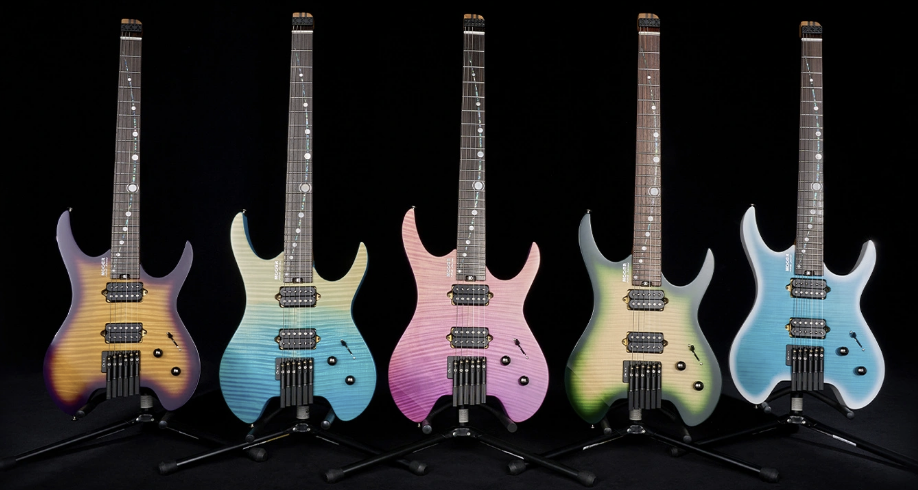 MHL-100 in cinque finiture lucide – Purple Gradient, Green Gradient, Dreamy Blue, Purple Burst e Blue Burst – mentre dota la tastiera di vistosi segnatasti con disegno orbitale estesi lungo tutta l’estensione.