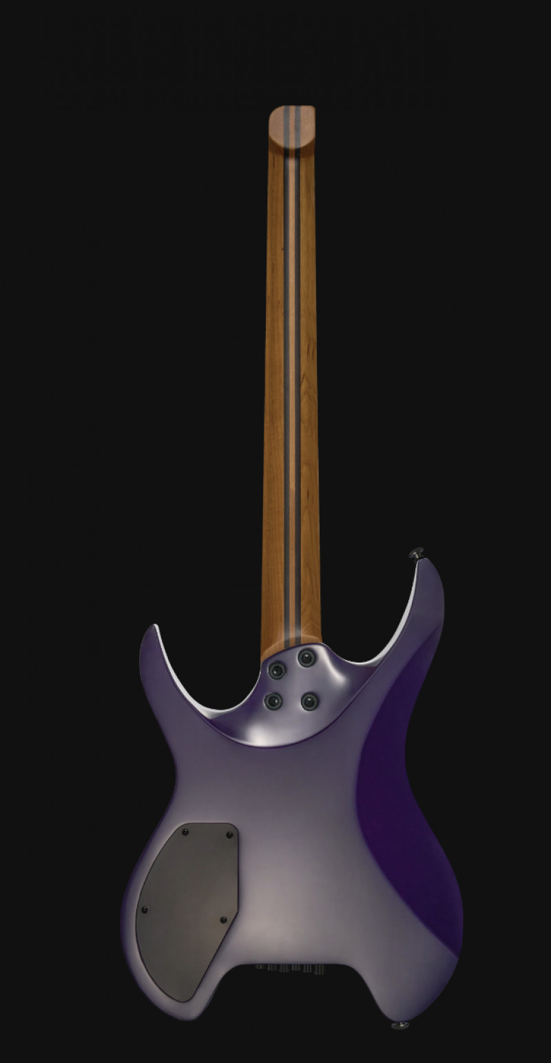 Costruzione: Bolt-on – Shape: headless, doppia spalla mancante asimmetrica – Scala: 25,5” – Body: Pioppo – Top: Acero Roasted – Manico: (5 pcs) Acero Roasted con profilo a C – Trussrod: Dual Action –Tastiera: Palissandro, con curvatura 12” – Tasti: 24 Nickel + zero fret – Capotasto: Osso, mm 42 – Ponte: GTRS Custom HL-II – Humbucker: MHL-1B (ponte), MHL-100 (manico) – Selettore: 3 posizioni – Controlli: Volume (push/pull per lo split dei coli), Tone – Corde: 009-046 – Finiture: Purple Gradient, Green Gradient, Dreamy Blue, Purple Burst e Blue Burst